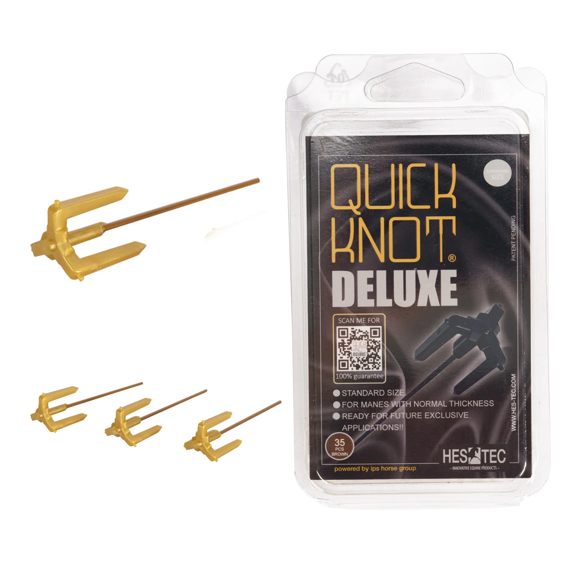 Get ready to breeze through show prep with the Quick Knot Deluxe Pins, the go-to grooming tool for flawless, competition-ready plaits. Designed to save time and effort, these easy-to-use pins make securing and removing braids a total snap with no scissors or frustration required. Whether you're a pro groom or a hands-on horse owner, these discreet little lifesavers are a must-have in every grooming tote.