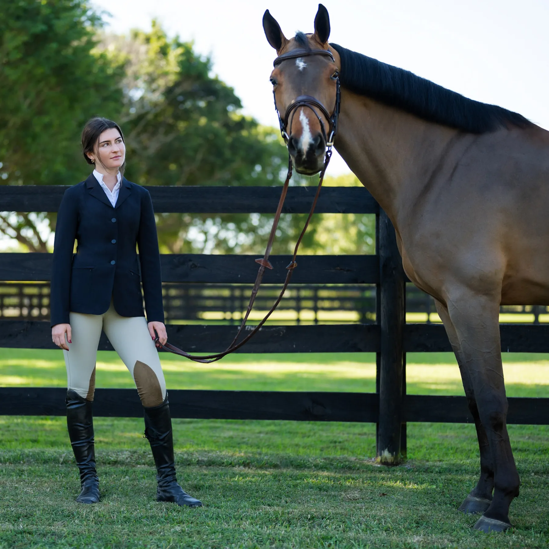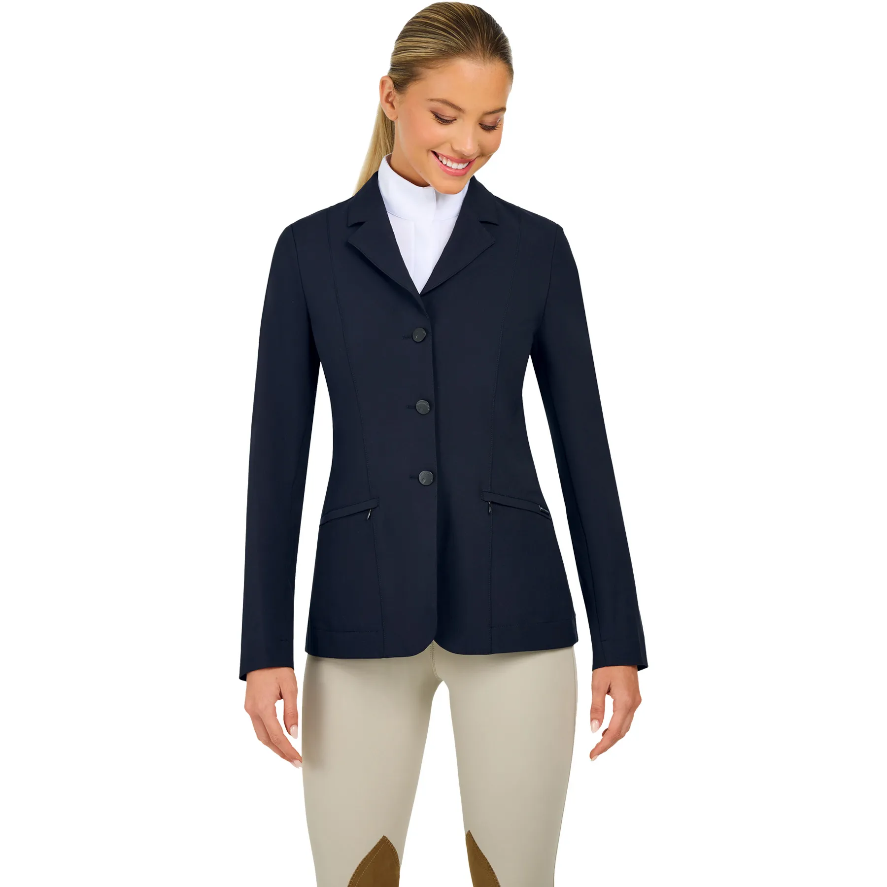 The R.J. Classics Ladies Sloane Washable Show Coat delivers polished performance and unbeatable comfort—all at an approachable price. Designed with freedom of movement in mind, this unconstructed coat features comfort stretch fabric, practical details, and timeless style, making it a reliable choice for both new riders and seasoned competitors. Featuring discreet side holes, this jacket allows riders to secure their number string beneath the coat for a smooth, polished look in the front.