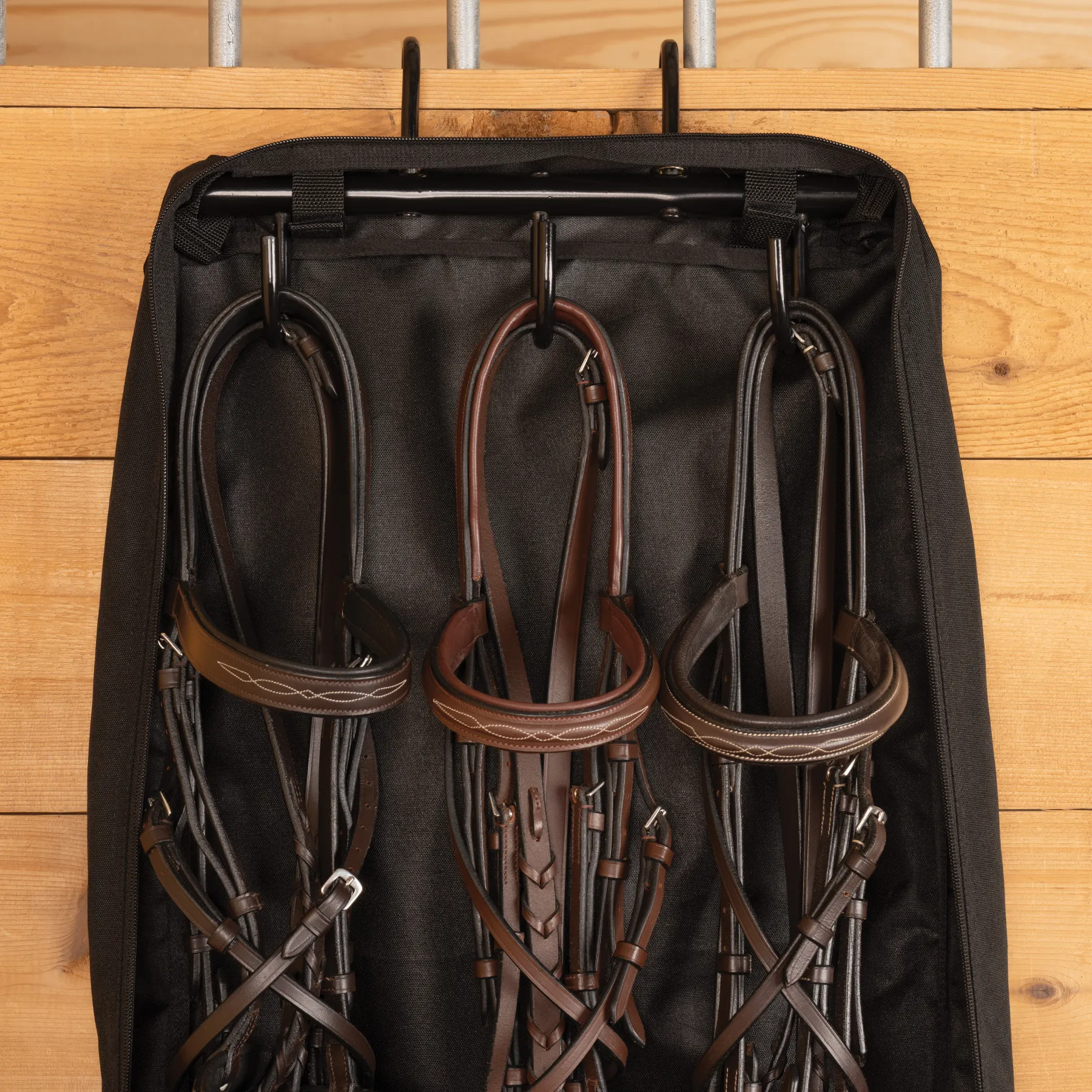 With this durable tack rack case, your tack will stay clean, organized, and ready for use wherever you are! Ideal for storing your halters and bridles at shows, this case comes with a sturdy three-hook tack rack encased in 600 denier polyester with Teflon. The Teflon adds durability and repels oils and dust to keep your bag looking better for longer! The heavy-duty zipper closure opens fully for easy access.