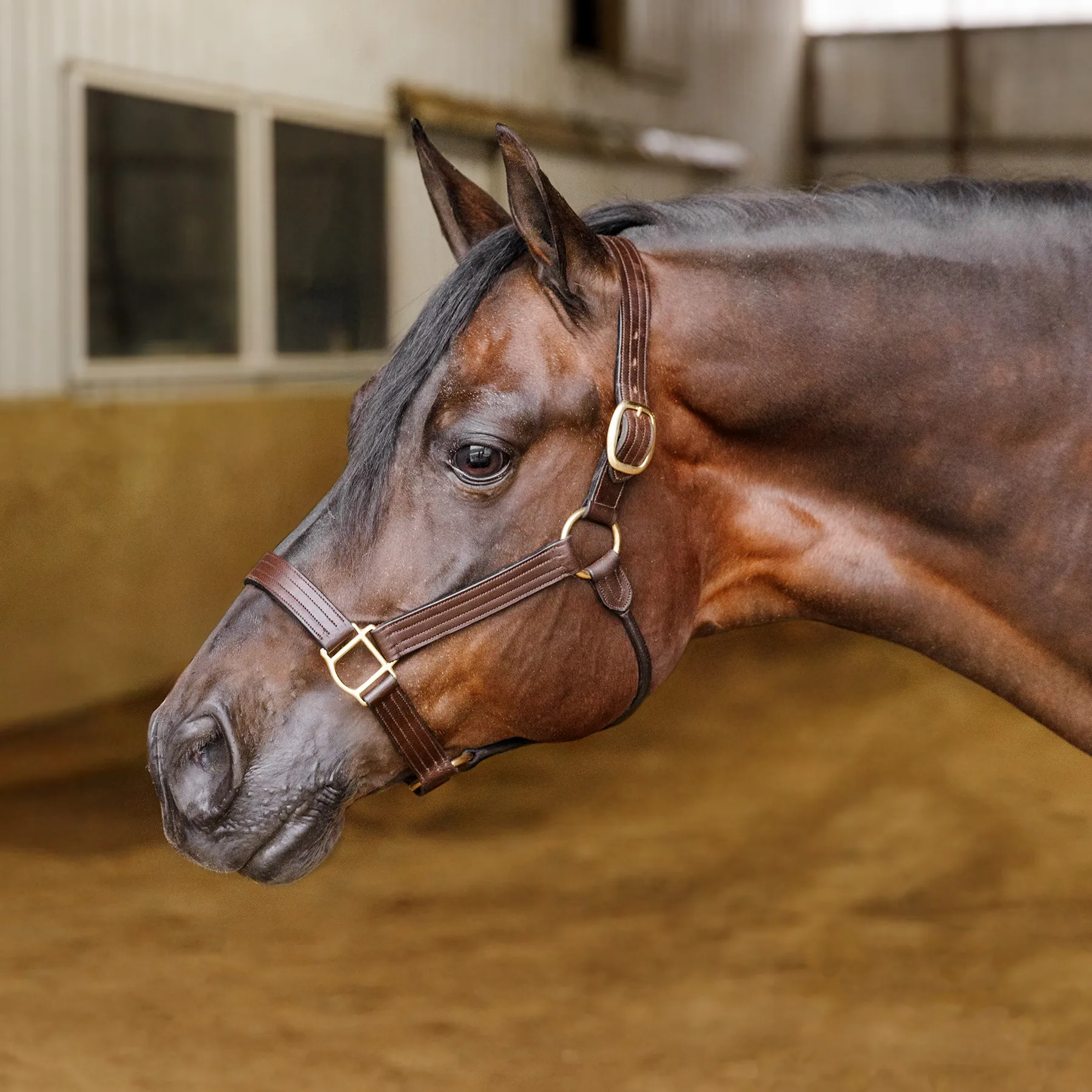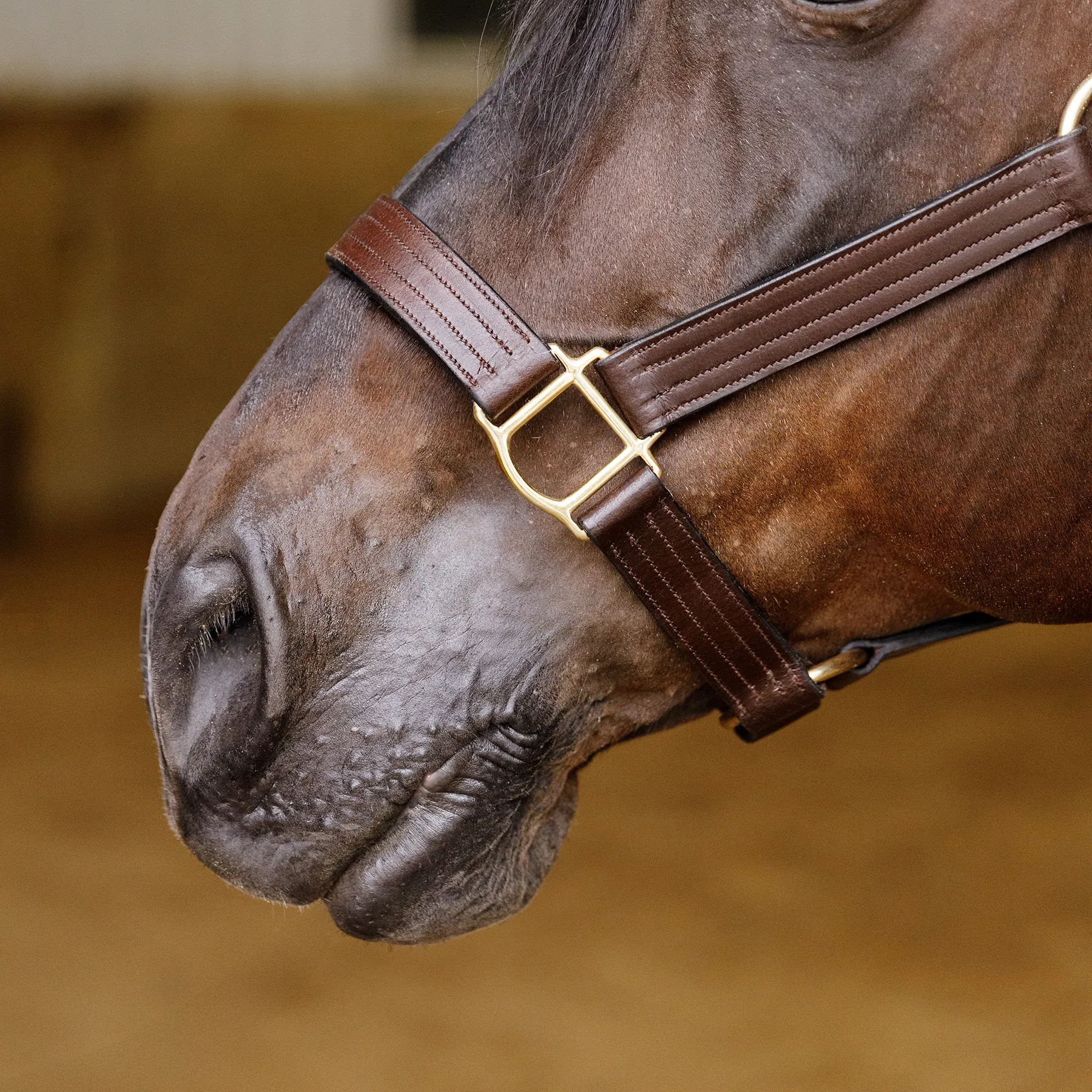 Combine style, durability, and comfort with this fixed-throat leather halter. Crafted from premium Grade A buffalo leather with a beautiful tonal four-row stitch design, this halter offers a perfect fit and long-lasting performance. Its rich brown color complements your horse's natural beauty while showcasing your commitment to quality.