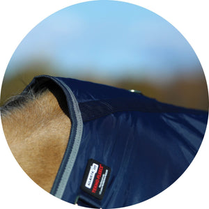 From wide to narrow, high head carriage to low, the patented Adjusta-Fit® system customizes the neck opening to fit any horse width or head carriage. This unique feature is what allows the same sheet to fit both a wide Warmblood and a narrow Thoroughbred.