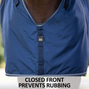 Deep V Closed front has a deeper cut, allowing your horse's head down without pulling the blanket forward, avoiding discomfort or rubbing.