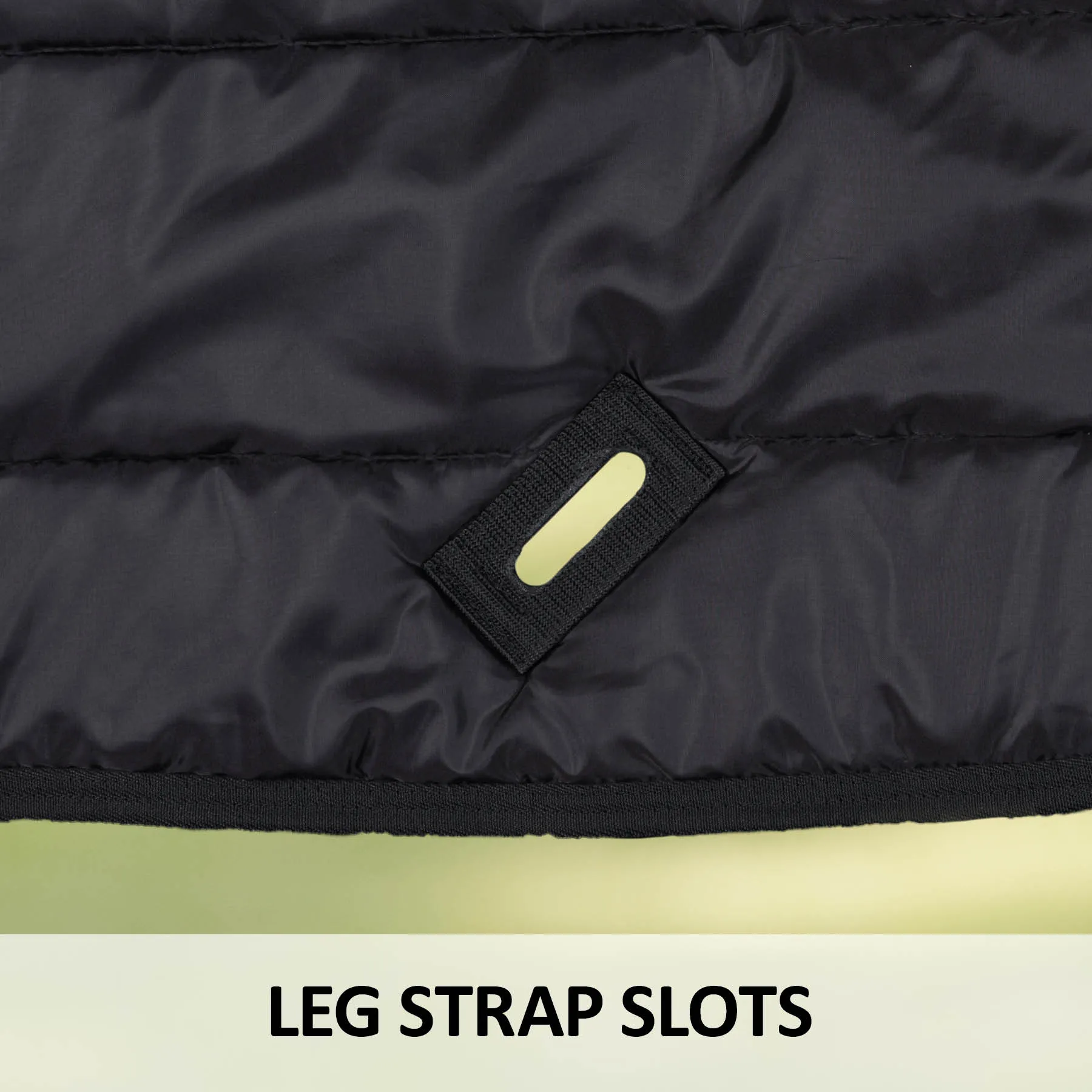 Leg straps from the top blanket fit through slots in the liner