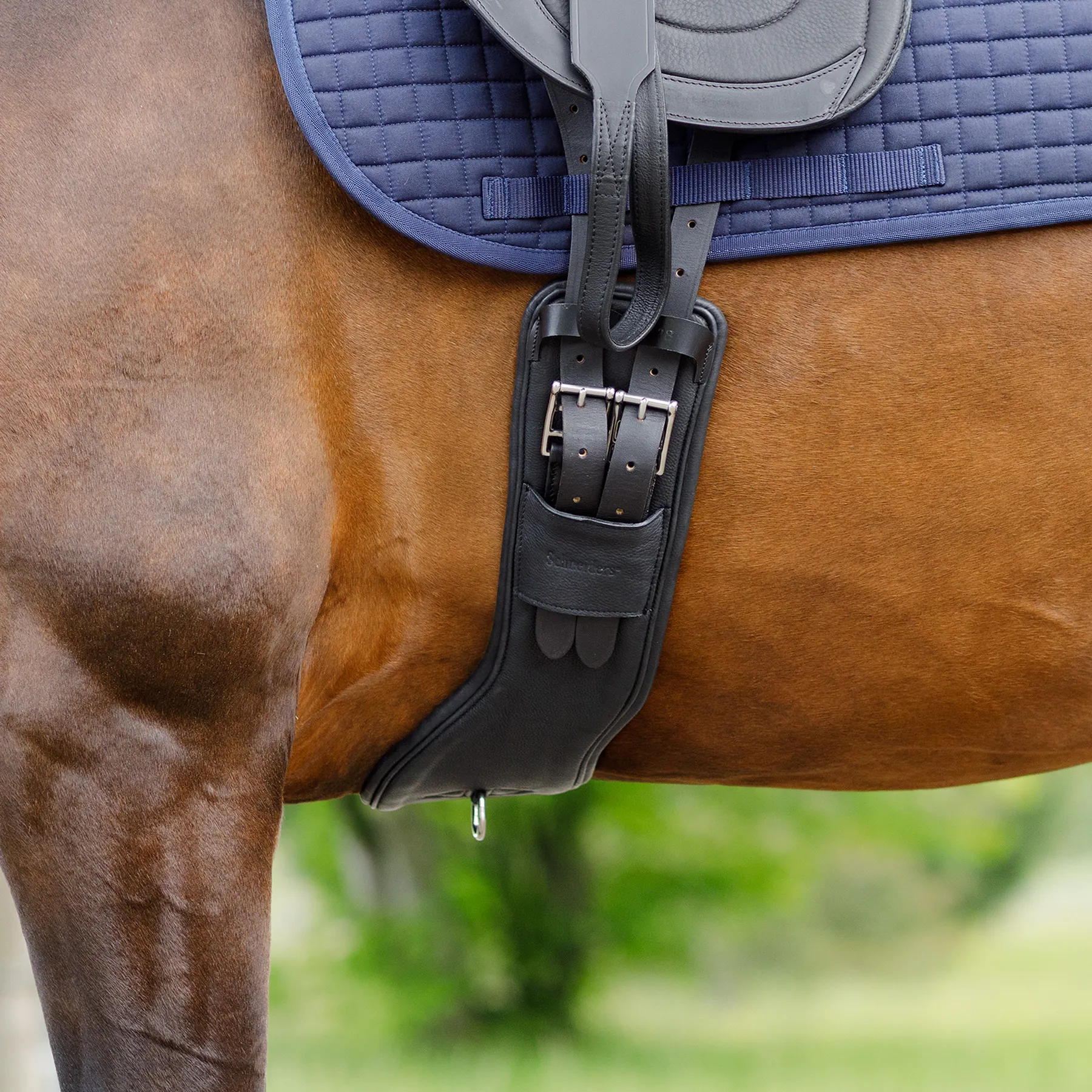 This anatomically shaped dressage girth is designed with your horse's comfort and performance in mind. By freeing up the shoulders, it reduces restriction and allows for smoother, more extended movement, especially beneficial during training and performance. Made from luxurious aniline calfskin leather, it delivers both comfort and longevity in a sleek, professional design.