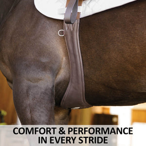 A properly fitted girth is key to your horse’s comfort and performance. The anatomically contoured design is strategically shaped around the elbows and shoulders, reducing pressure points and allowing a full range of motion. This design ensures that your horse can extend, flex, and engage their stride freely whether galloping, jumping, or collecting.