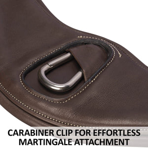 Attaching a martingale has never been easier! The built-in carabiner center clip allows for quick, secure, and hassle-free attachment, so you can focus on your ride instead of fumbling with straps and buckles.