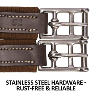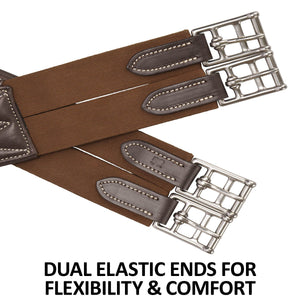 Unlike rigid girths, this model features triple-ply elastic on both ends, giving it the perfect amount of stretch to move with your horse. This elasticity reduces girthing pressure, ensuring a comfortable, snug, and forgiving fit. Plus, it makes girthing up easier on both you and your horse.