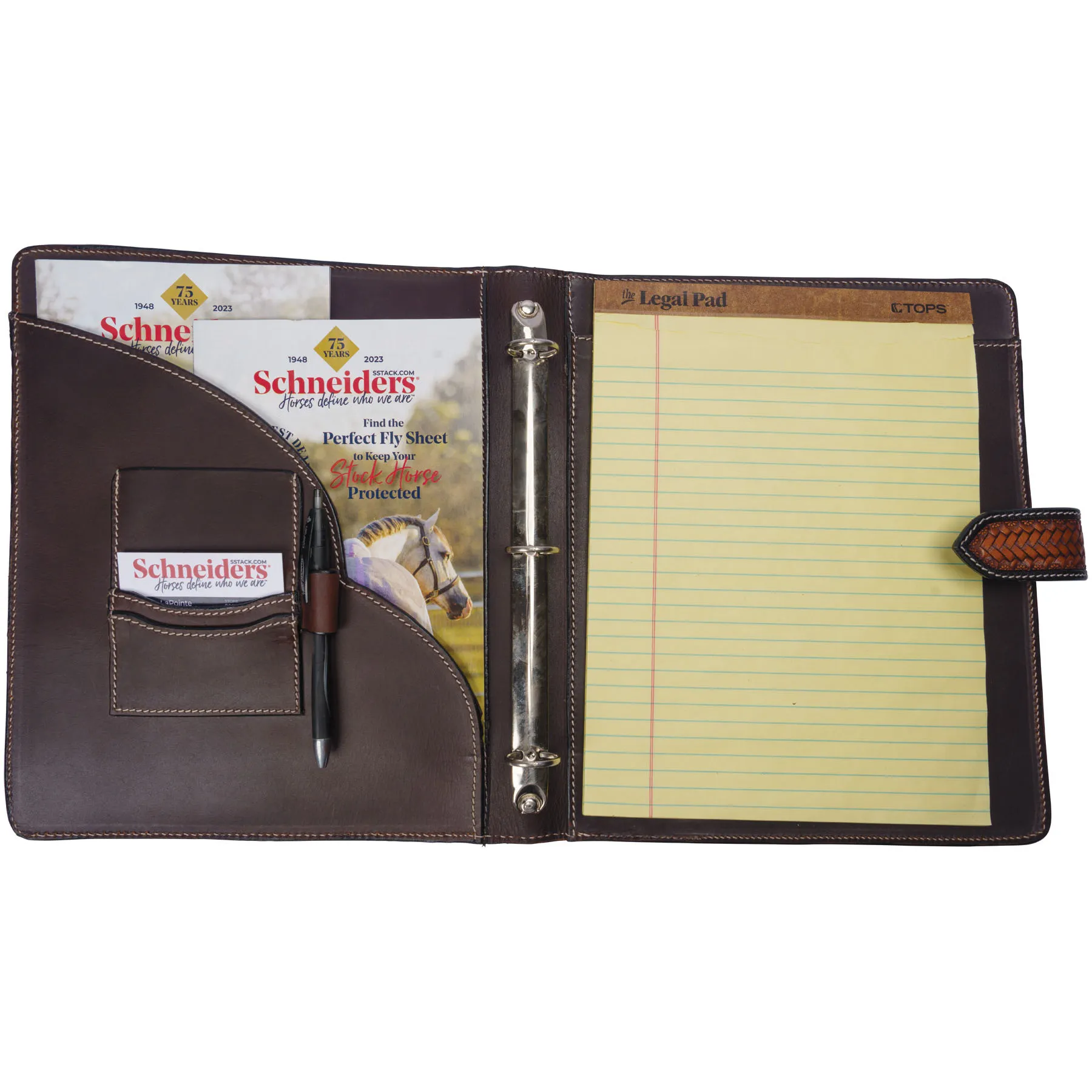 Schneiders® Basketweave Tooled Leather Three Ring Binder Padfolio