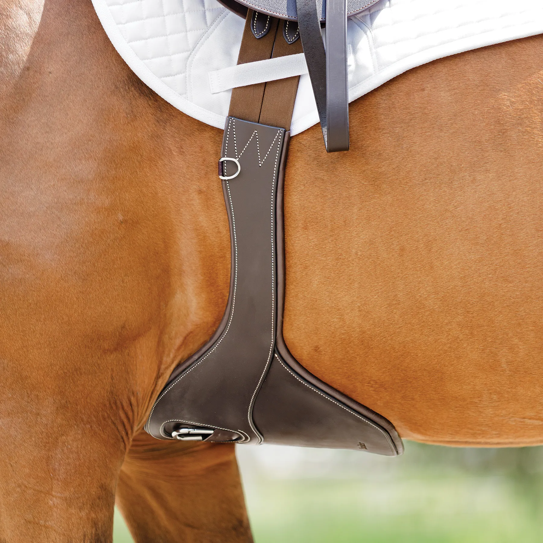 Protect your horse in comfort and style with our Bellyguard Jump Girth. Designed with anatomical precision and crafted from premium Grade A Indian buffalo leather, this girth delivers on both durability and performance. The soft, padded aniline leather underside offers a gentle touch, ensuring your horse stays comfortable during every jump.