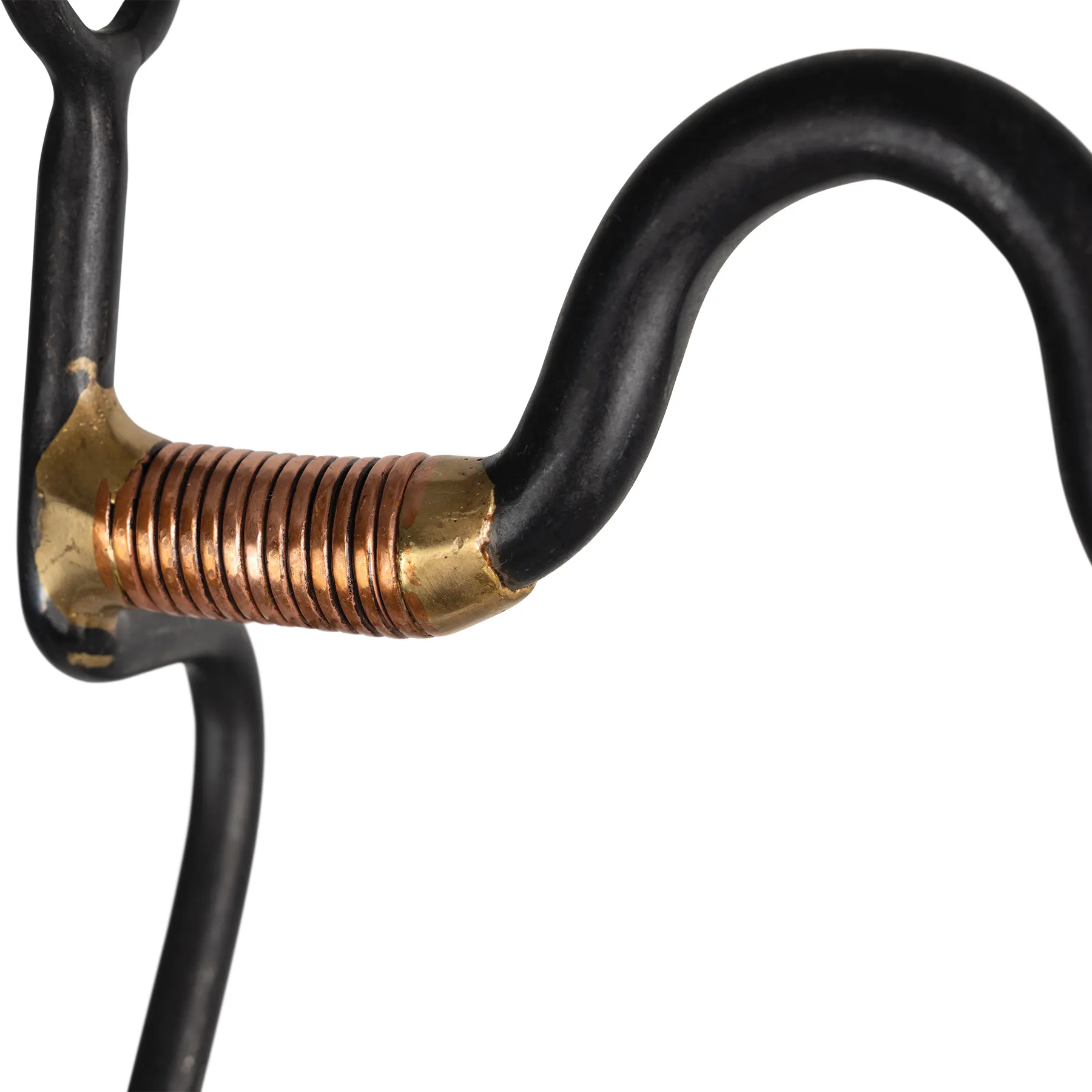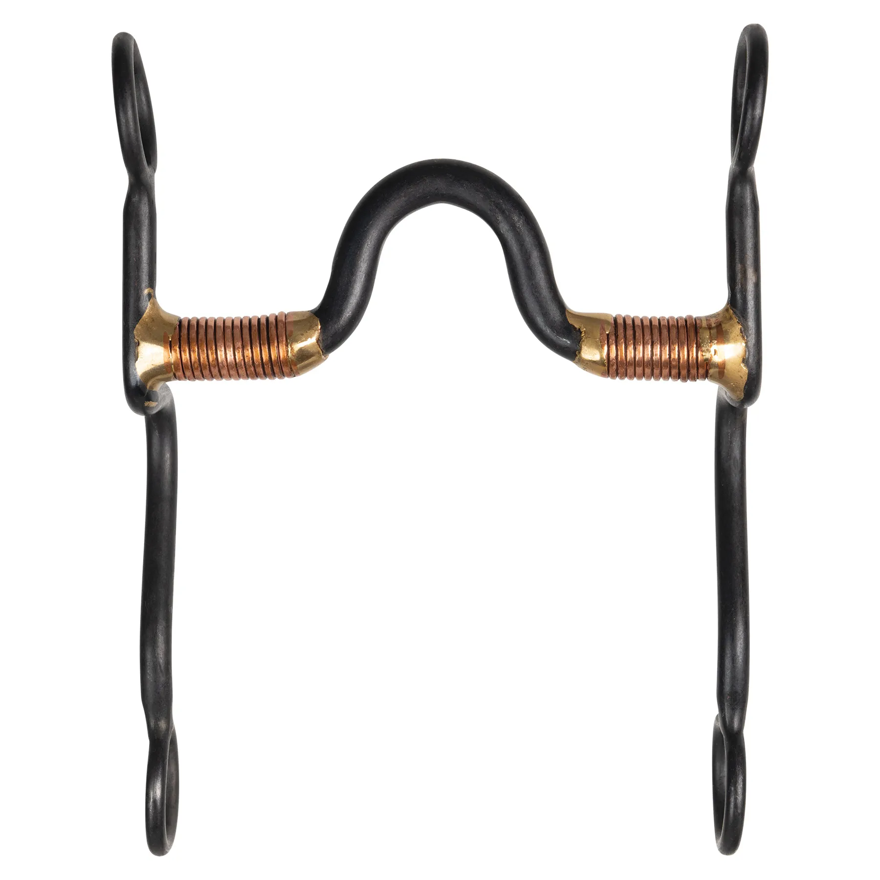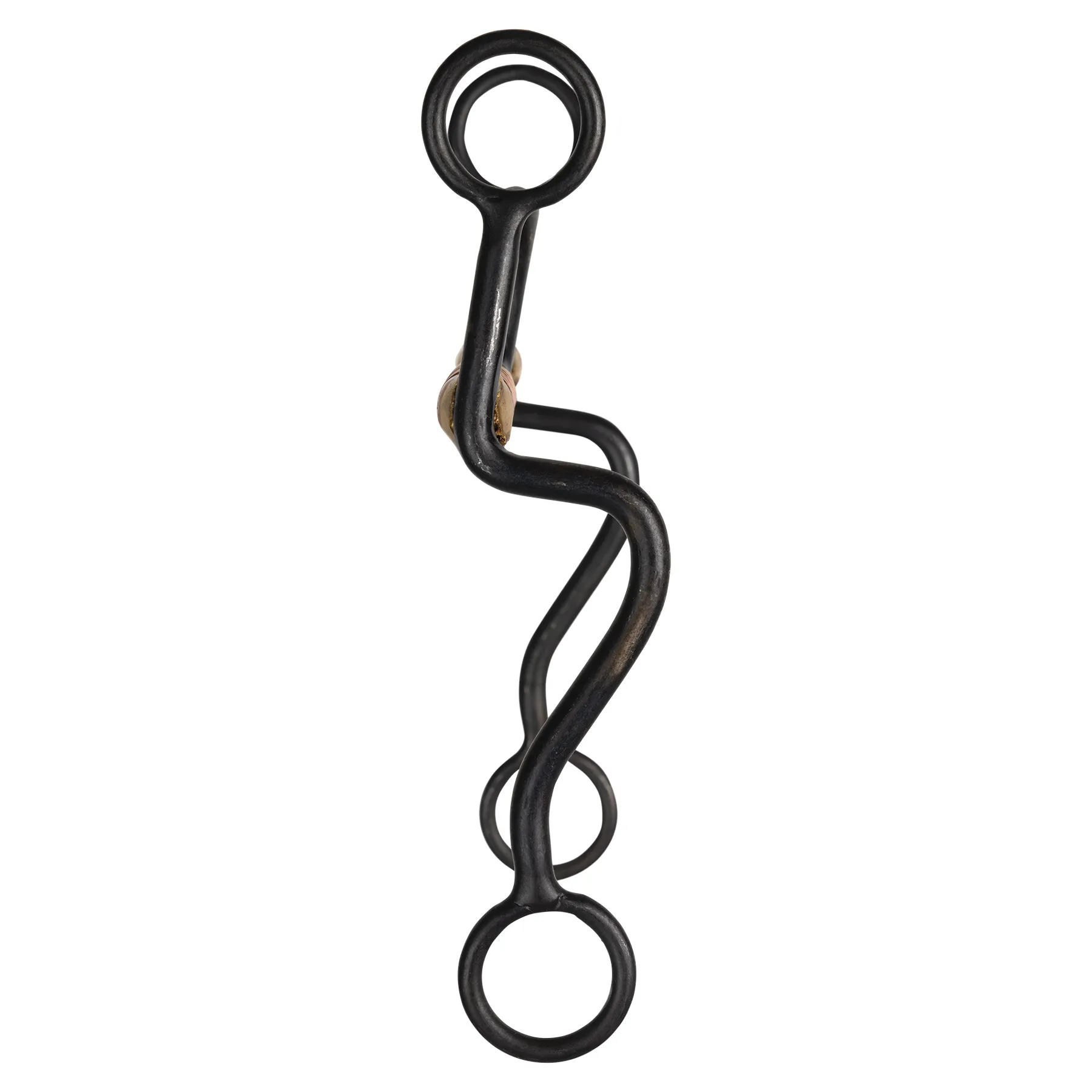 Crafted for experienced riders seeking enhanced communication, this black steel high port bit features tire tool cheeks for increased leverage with minimal hand movement. The solid 5" mouthpiece applies even pressure without pinching, while the 2" high port engages the palate for clearer cues and allows more tongue freedom. Copper-wrapped bars help keep the horse's mouth soft and responsive by stimulating salivation.