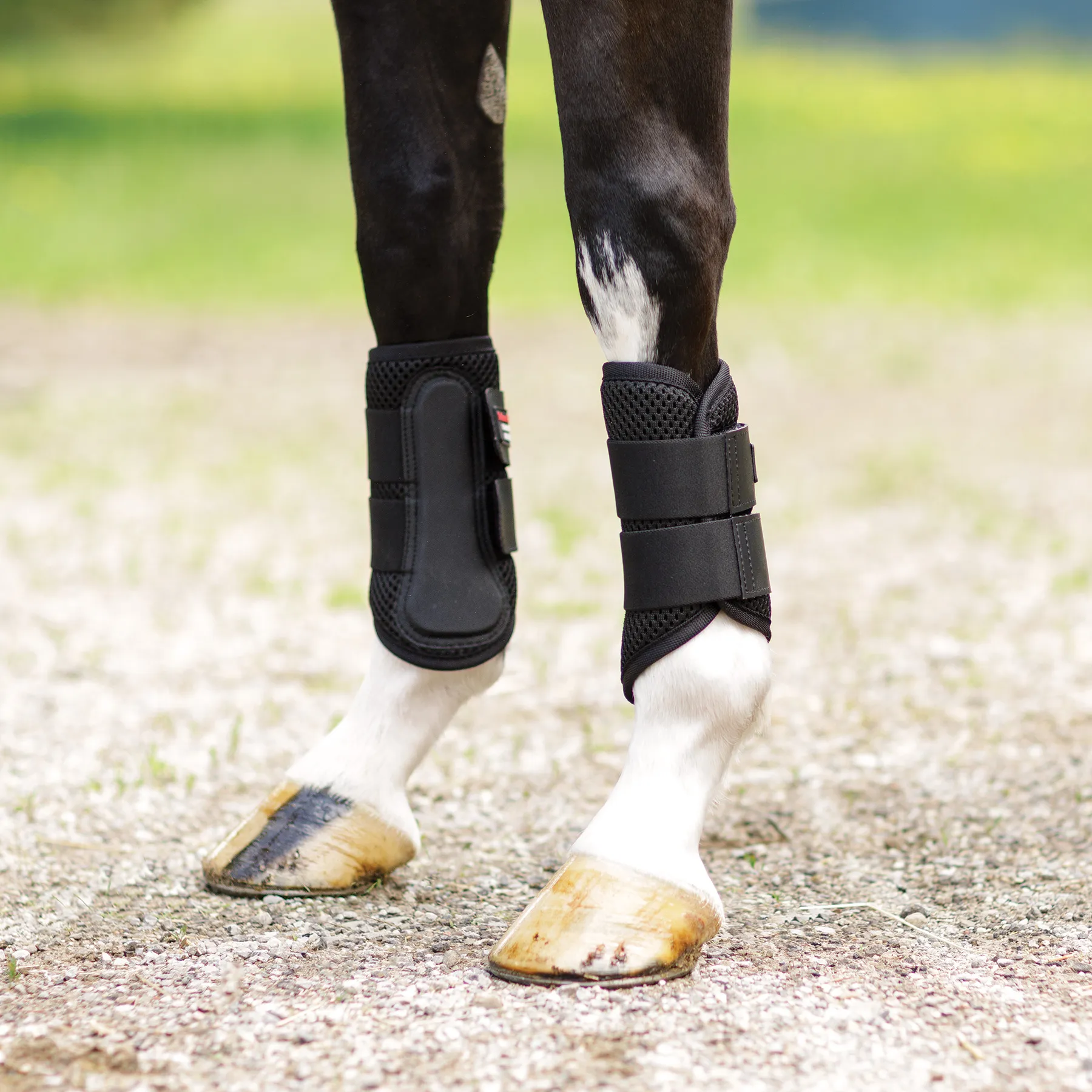 Protect your horse's legs with these breathable mesh brushing boots. Designed for durability and comfort, they feature a soft strike plate to shield against impact and a contoured shape that ensures a secure, stay-put fit. Whether you're riding or letting your horse loose in the field, these boots deliver dependable leg protection without overheating.