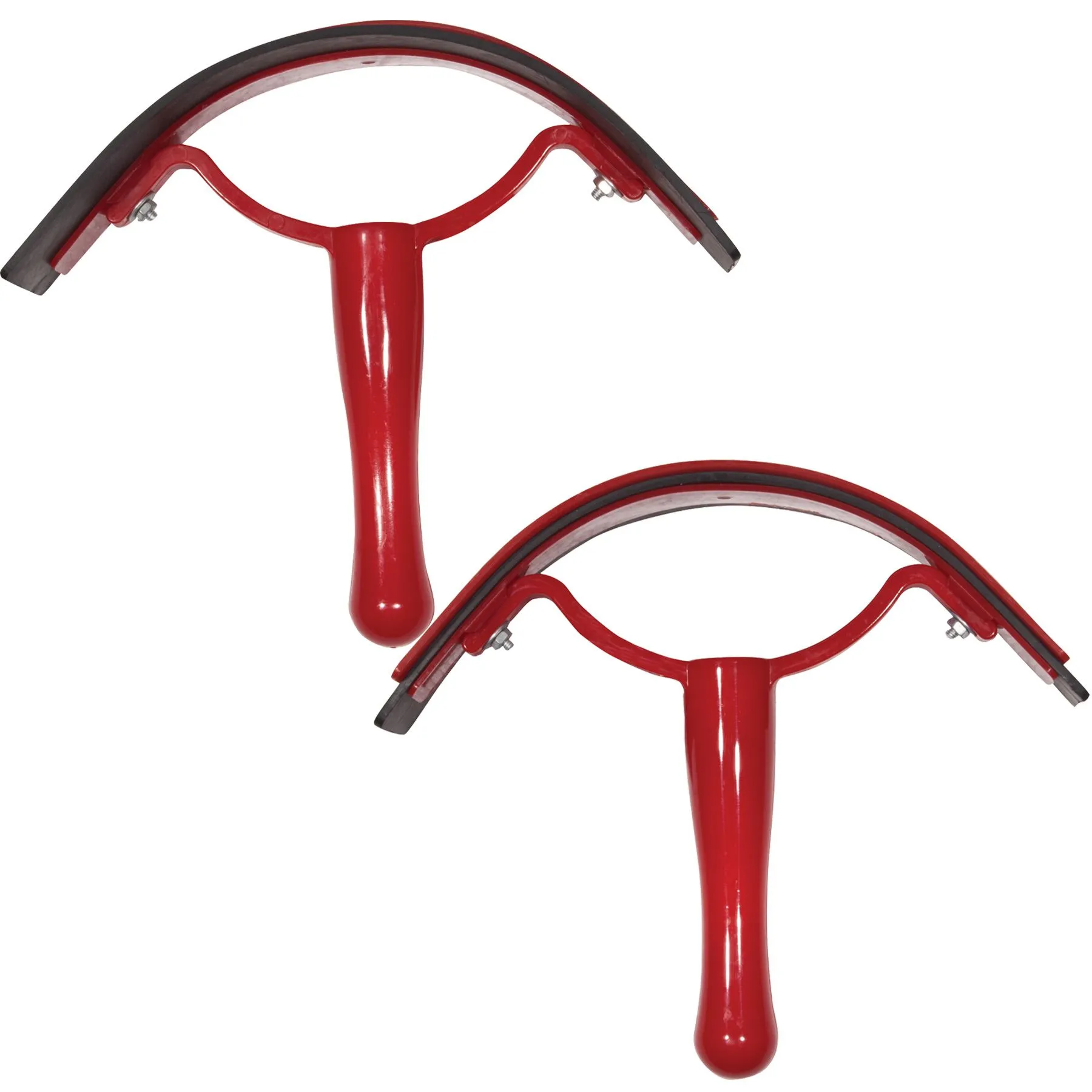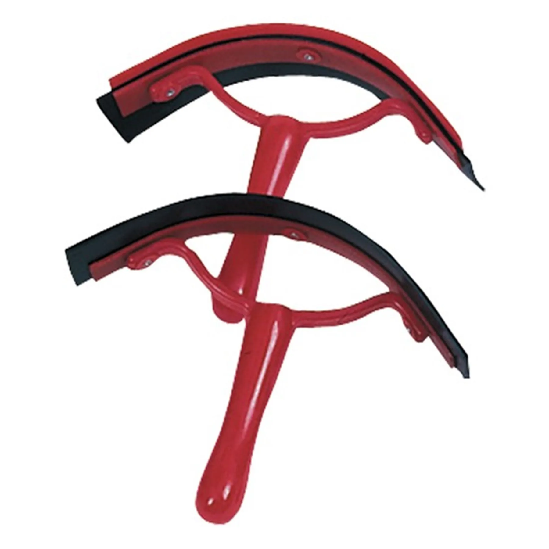 This curved sweat scraper is essential to any horse owner's grooming kit. This handy tool removes excess sweat and moisture, aiding in quickly cooling or drying off your horse post-workout or bath. It is crafted for horse comfort and is easy to use.