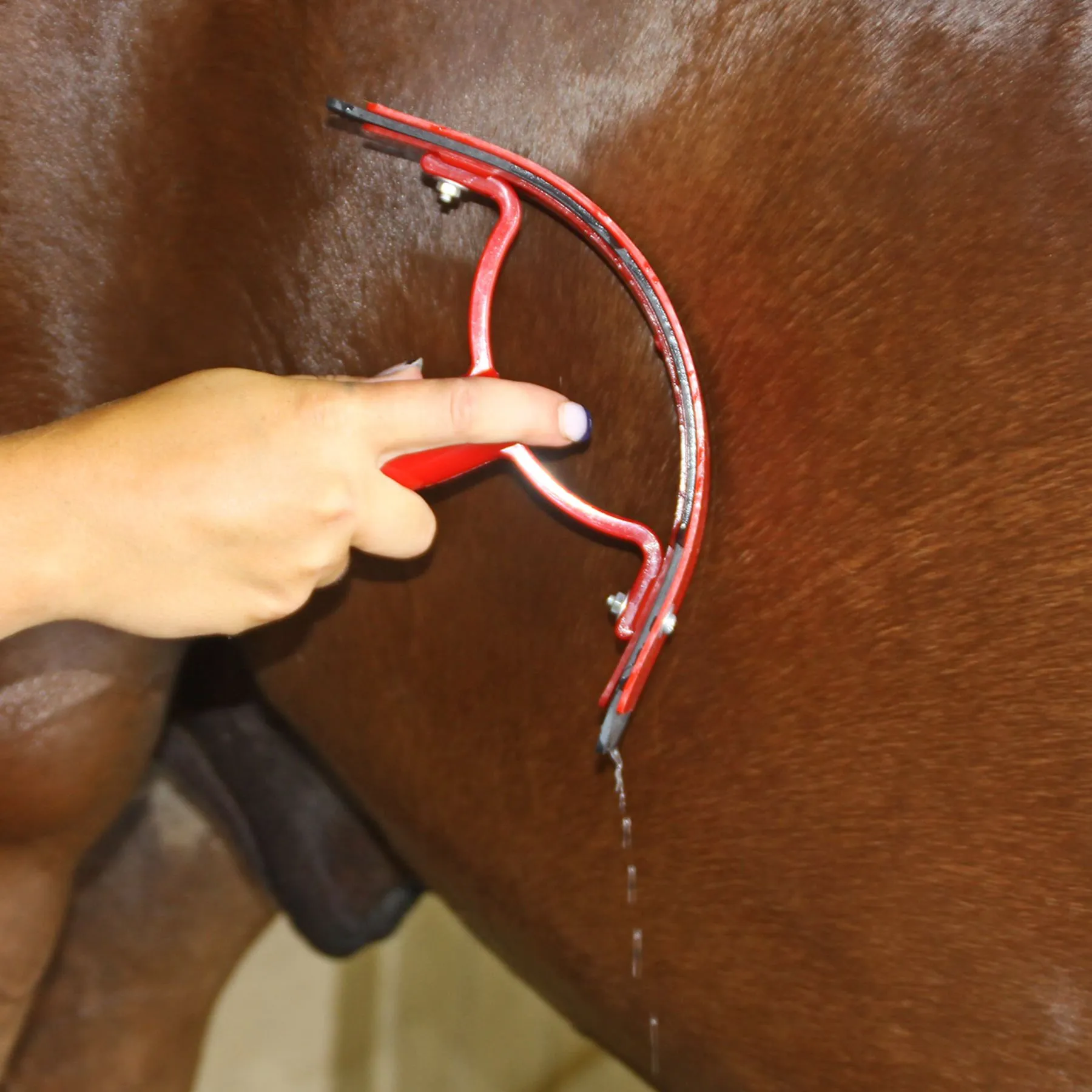 - Soft rubber edge and contoured design conform to the horse's body for gentle, effective use