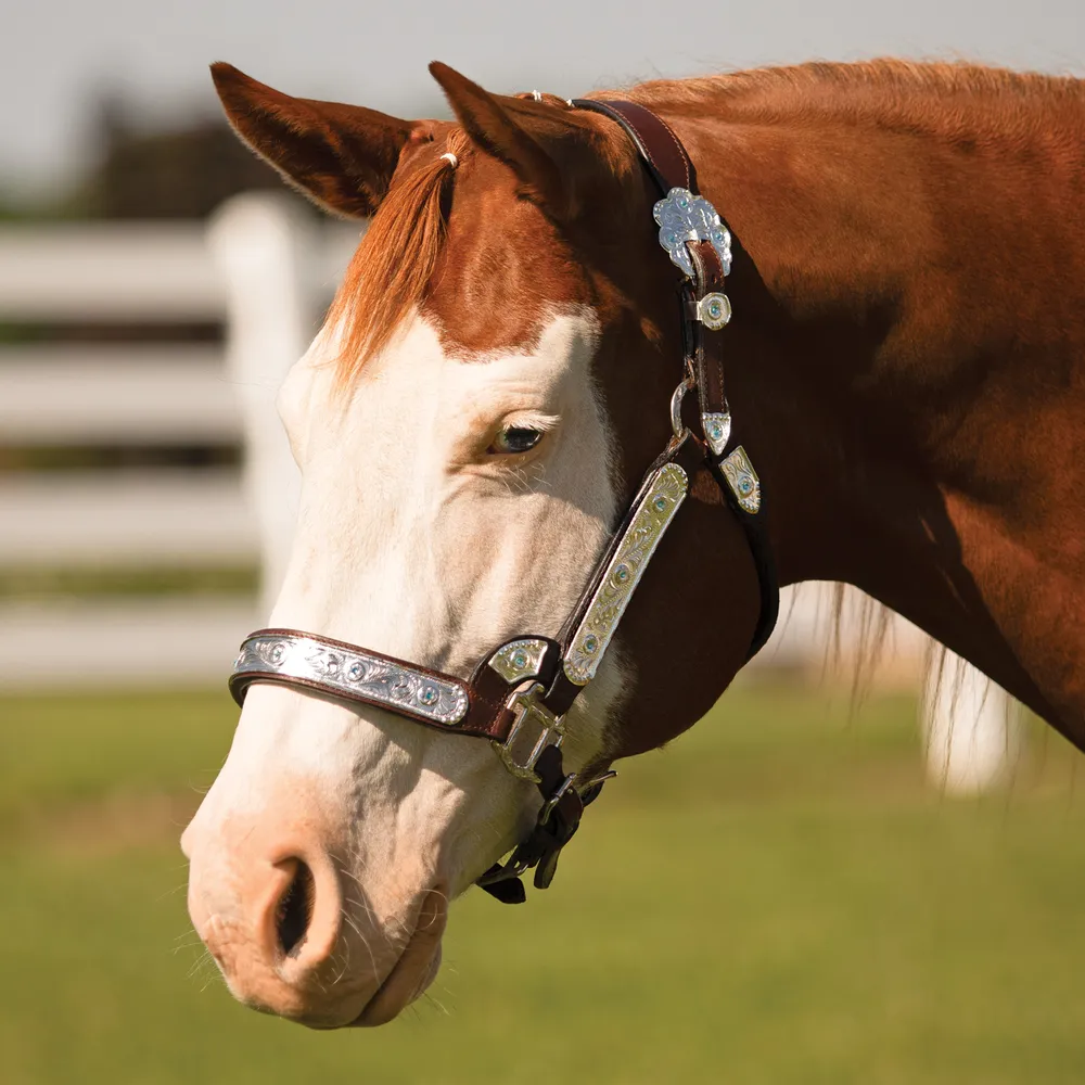 Bring refined style to the show ring without the premium price tag. The Schneiders® Dixie II Show Halter with Lead is a perfect first halter for aspiring show riders, combining rich dark leather, cream stitching, and stunning silver-plated hardware with eye-catching blue stone inlays. Complete with a matching leather lead, this halter is ready to turn heads and win ribbons.