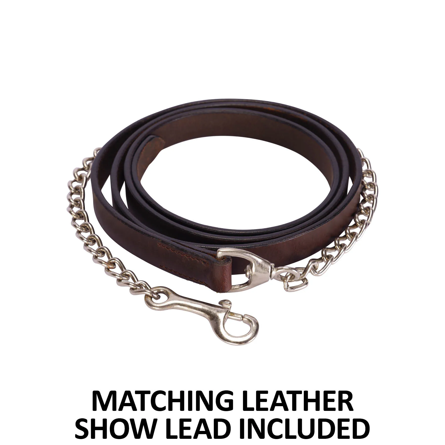 Includes a 6' leather show lead with 30" chrome-plated chain