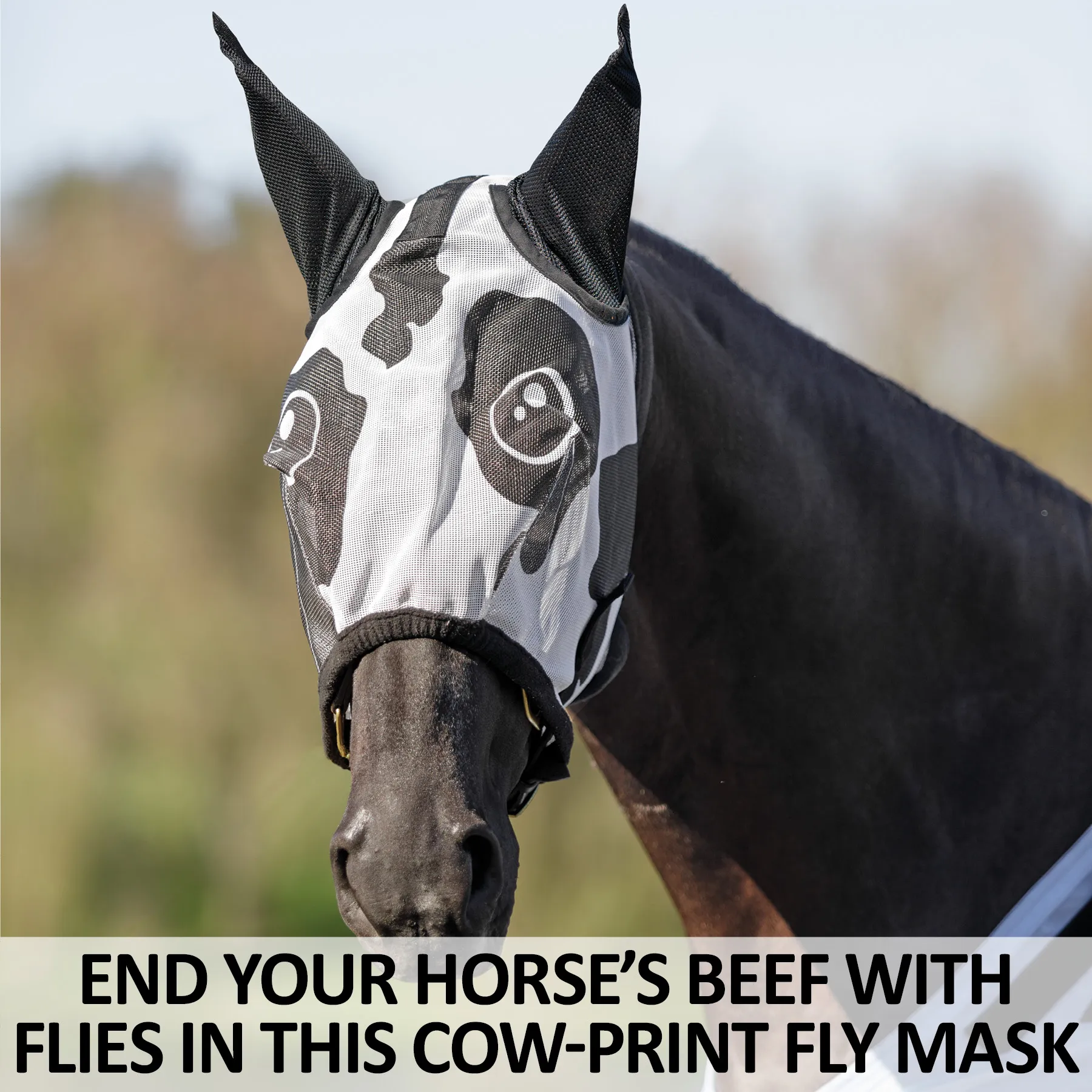 End Your Horse's Beef with Flies in This Cow-Print Fly Mask
