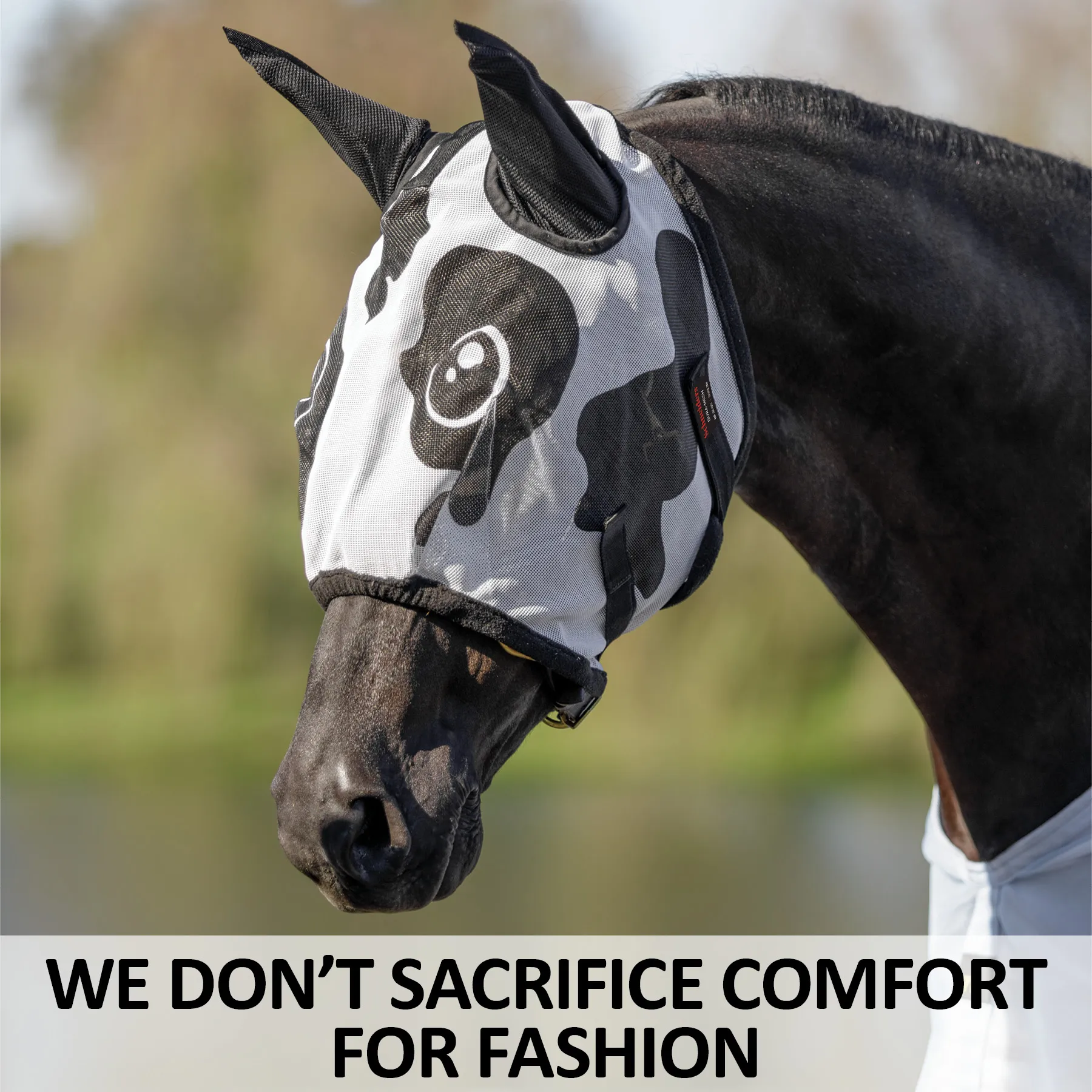 • A fly mask that features a hilarious cow print design