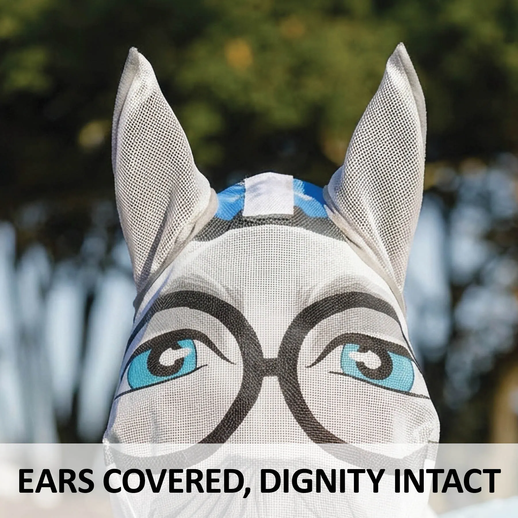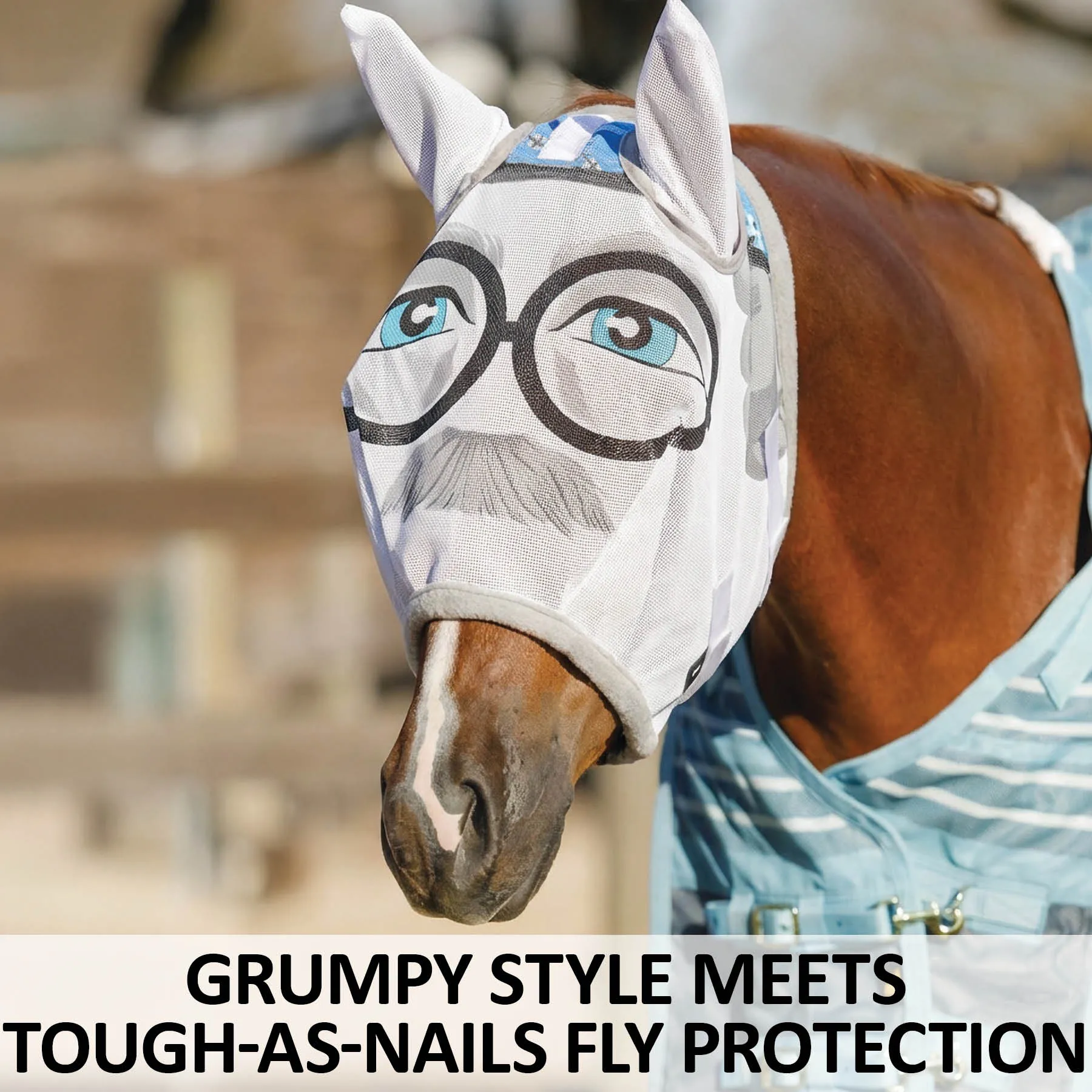 Meet the fly mask that channels all the "get off my lawn" energy your senior steed needs to fend off biting pests. With its classic grandpa vibe and serious insect-fighting features, this mask is more than just a novelty, it's a pasture-ready essential. Made from ultra-durable 1000D poly vinyl Dura-Mesh, it offers breathable protection against deer flies, greenheads, horse flies, and more. Whether your old-timer is chilling under the run-in shed or strutting his stuff in the sunshine, this fly mask delivers reliable coverage and comfort, with a dash of sass.