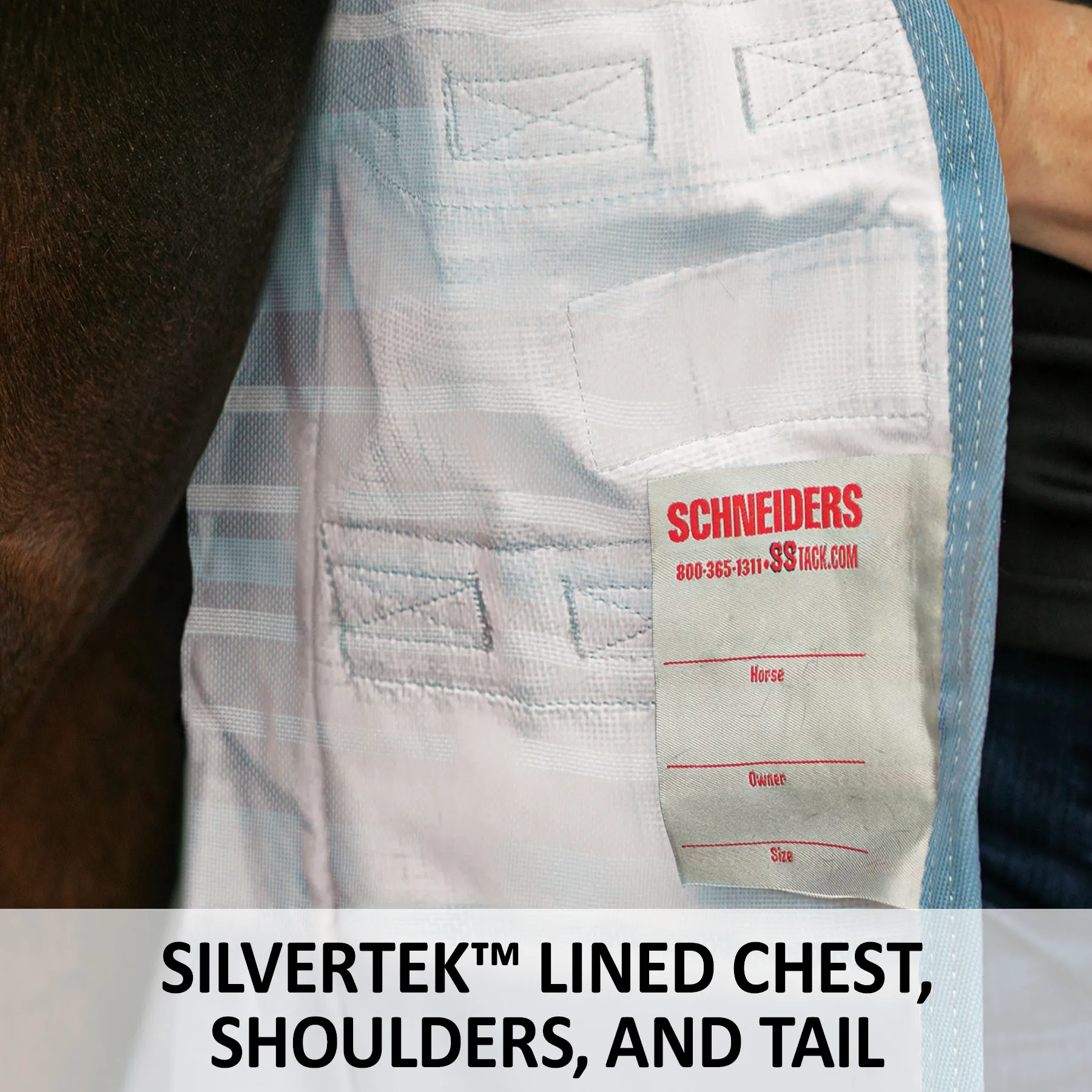 The most accurate and easiest way to determine your horse’s blanket size is to measure along the side of their body, from chest to tail. First, stand the horse square on a flat surface. Measure from the center of the chest, straight back to the very edge of the tail. Make sure to measure along the widest part of their shoulder and hindquarters. The number of inches measured in this way is your horse’s size. Look on the size chart for any Schneiders blanket for this number of inches to order your horse’s perfect size.