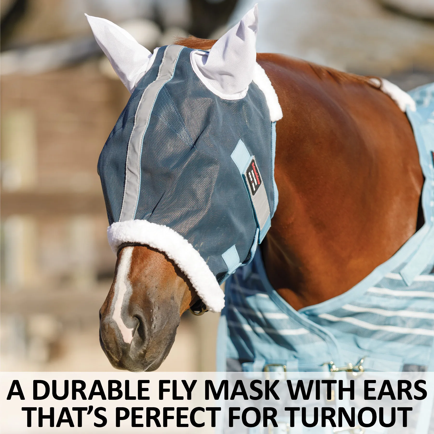 Back and better than ever, these durable fly masks now feature an added reflective strip down the face and on the hook and loop closures for extra safety precautions. This fly mask with ears is a perfect option for any horse who needs protection from pesky insects from a durable mask. Designed with a 1000D poly vinyl Dura-Mesh, your horse can see clearly through the mask and remain shielded from harmful bugs. With mesh ears to keep the bugs away, this mask offers fleece-covered elastic binding around the nose and crown, ensuring a comfortable fit that reduces rub points, even if worn for long hours during turnout. Plus, the slot at the poll allows for an easy neck cover attachment, while the hook and loop assist throat latch closure provides a secure fit for your horse's face.