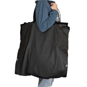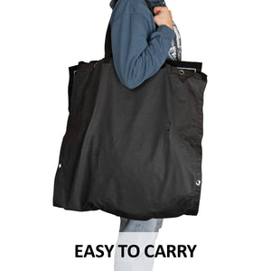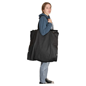 Two 1" wide handles and a hook and loop closure run along the top of the bag, folds and fastens together for easy transport.