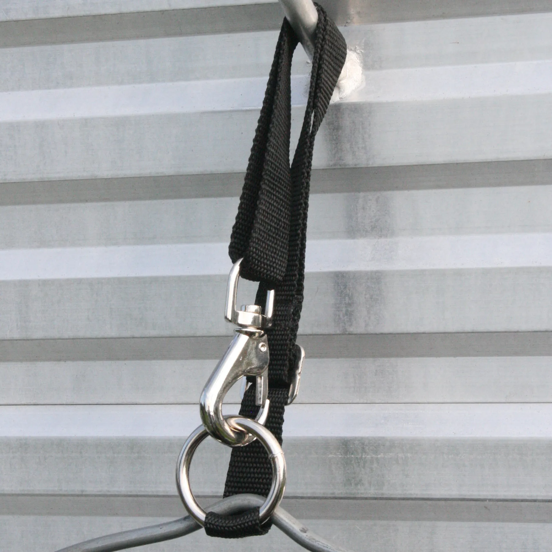 This utility strap is a go-to choice for your barn-hanging needs. Available in both adjustable and non-adjustable options, this strap is perfect for hanging items from buckets to hay bags, bridles, and beyond in the barn, trailer, or at shows. With its durable construction and easy-to-use design, you'll wonder how you ever managed without it.