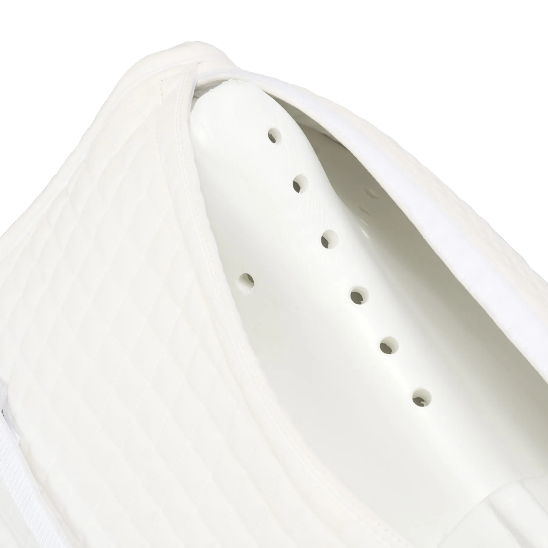 Comfort, coverage, and show ring style, wrapped into one with the E-Z View® Pin-On Quilted Hunter Saddle Pad. This raised wither relief pad offers support without bulk, featuring pin-on number holders and layered cushioning for comfort in the show ring. With a classic quilted look, it's perfect for your next competition.