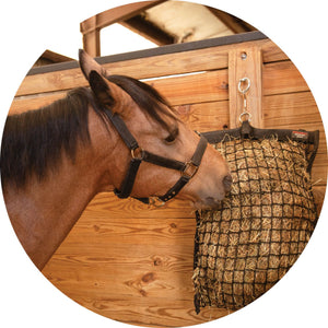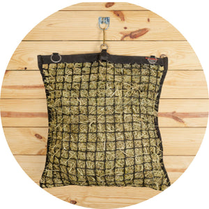 The hay net incorporates approximately 1 1/4" squares to encourage a natural and healthier eating pattern for your horse. Slow-feed hay bags decrease wastage and keep your horse engaged in eating for longer periods.