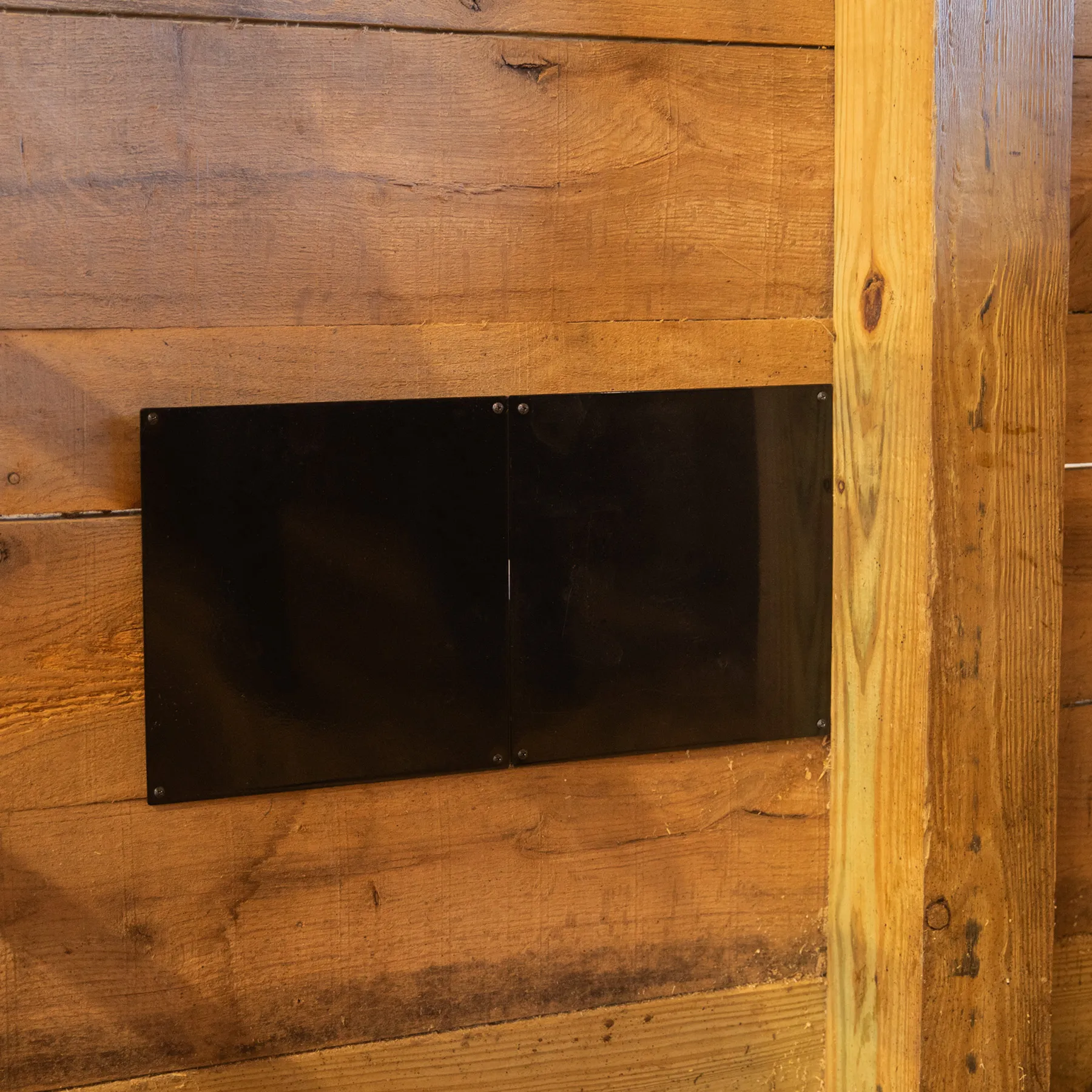 Protect the wooden boards in your barn and stalls with these heavy-duty metal wall plate chew guards. Made from durable 1/16" thick steel, these chew guards easily mount over boards, preventing horses from chewing and damaging wood surfaces. These plates protect wood from curious horses, and they are ideal for use in stalls or along arena walls. Use these plates not only to prevent wear but also to effectively cover holes, rough spots, or other imperfections. They come in a set of four, each measuring 12" x 12", and include mounting screws for easy installation.