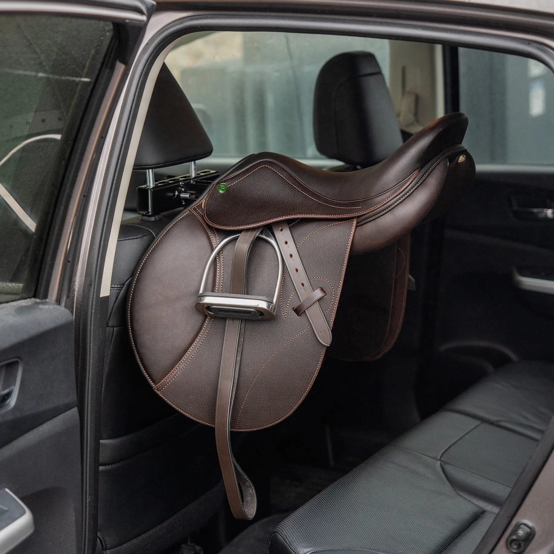 Whether you're heading to a lesson, clinic, or horse show, our upgraded car saddle rack is built tomake transporting your English saddle simple and secure. Designed to mount under your vehicle's headrest bars, this rack offers a snug, adjustable fit and sturdy support with welded flaps and a non-slip grip. No more tipping saddles or cluttered back seats, just secure, streamlined saddle storage for life on the go.