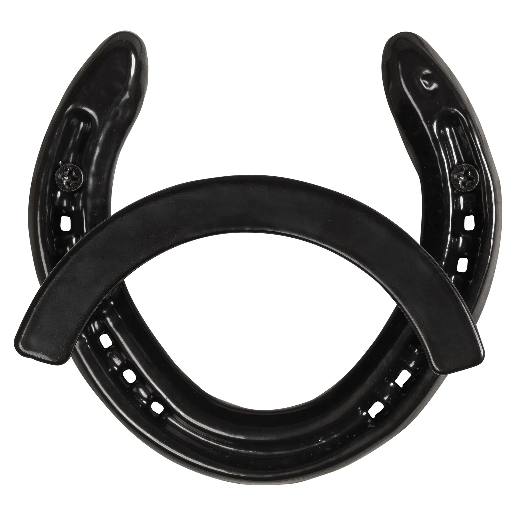 Keep your tack room organized while properly supporting your bridles with this crown-saver horseshoe bridle rack. Crafted from real steel horseshoes, this rack blends classic equestrian style with thoughtful functionality. The extended crown rest helps maintain the natural shape of your bridle crown, while the slightly raised end lip helps keep tack securely in place without interfering with wider anatomical designs.