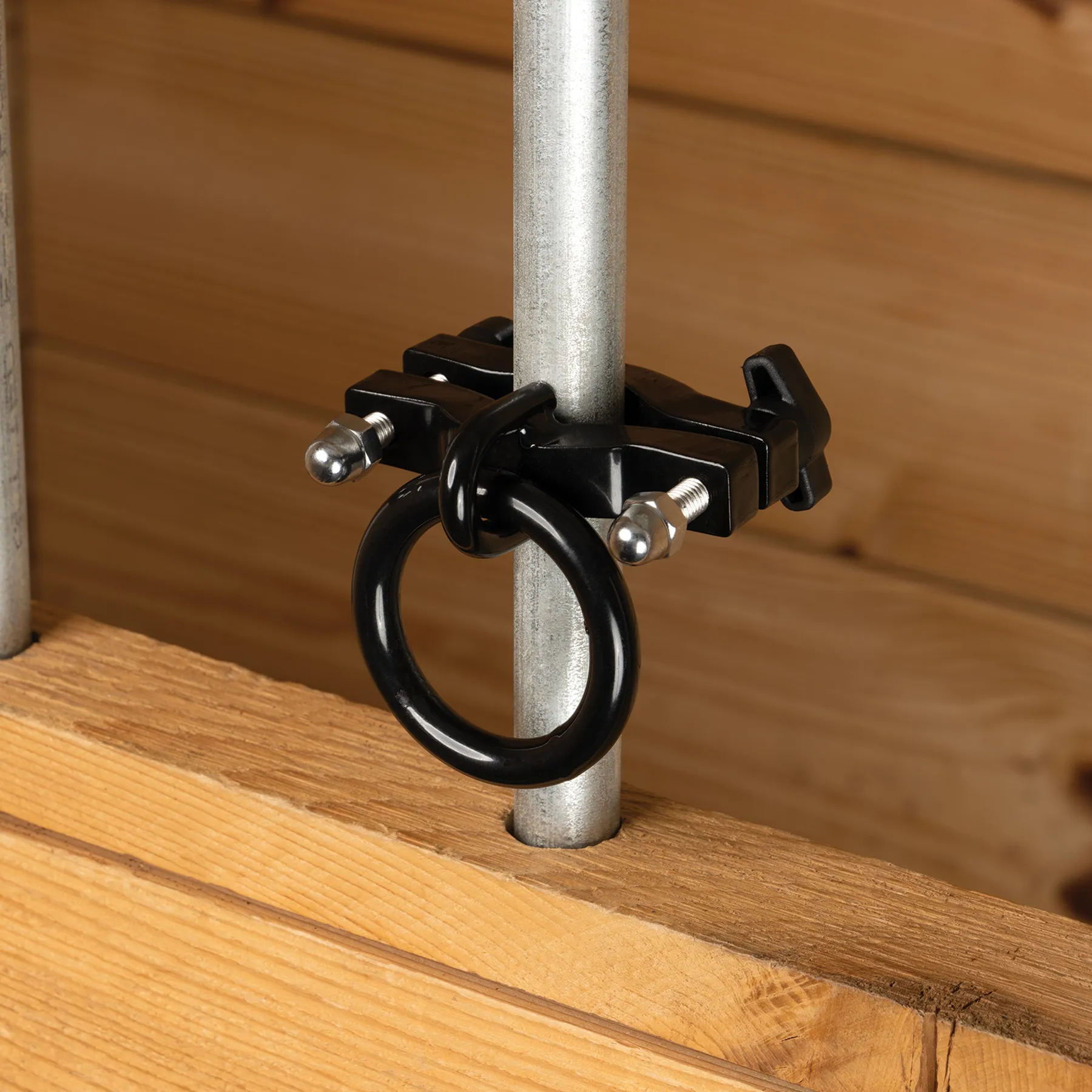 Whether you're at home in the barn or traveling to shows, this portable stall front bar tie ring is your go-to for reliable tie solutions. Designed for convenience and durability, these tie rings provide secure and adjustable options for hanging hay bags, water buckets, and more - all without the need for permanent installation.