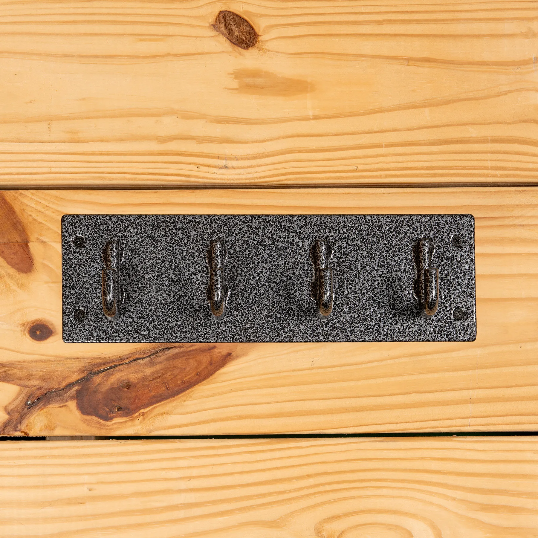 - Holds up to 25 lbs with 1/2" thick steel hooks