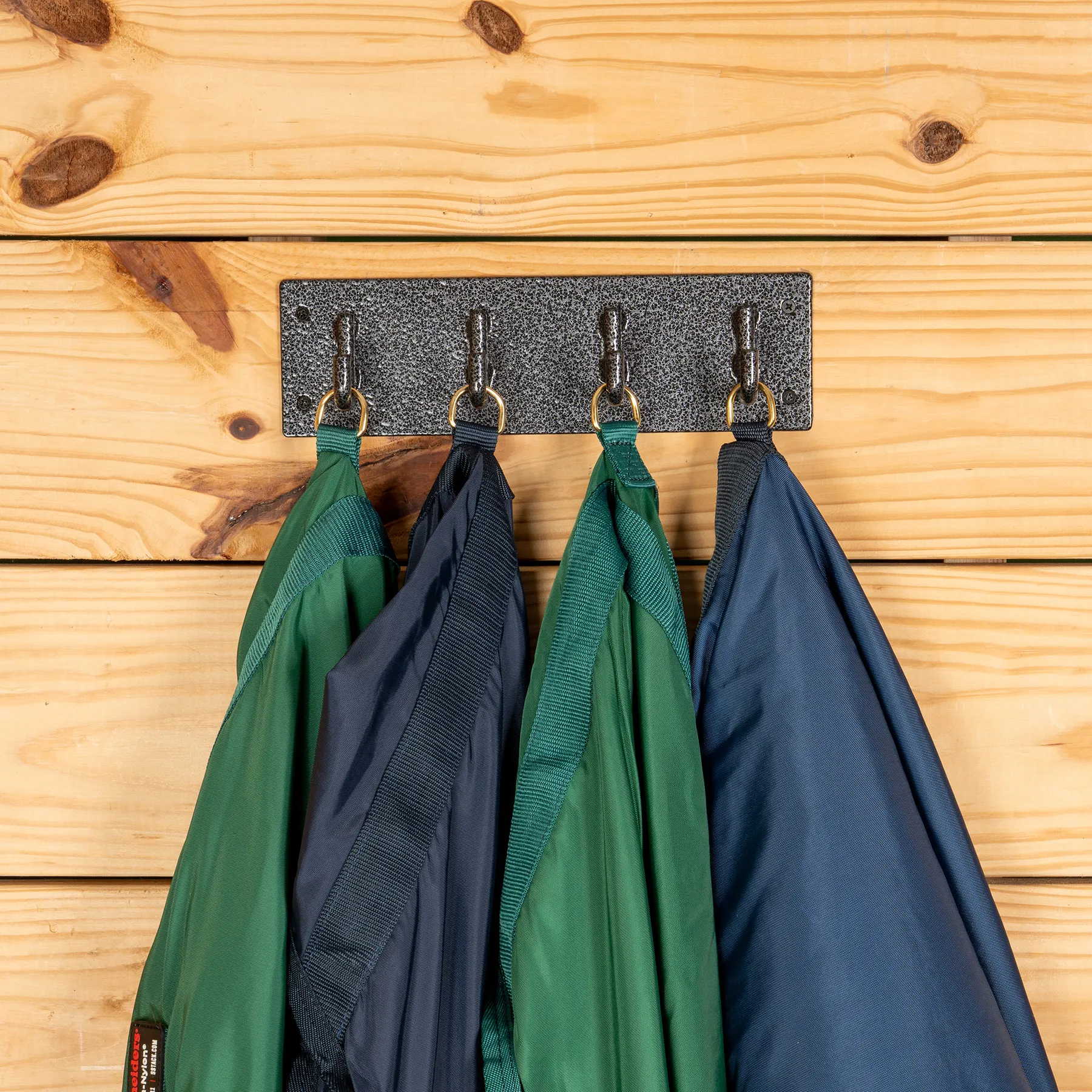 Designed for equestrians who crave an organized, clutter-free space, this 4-hook hanger is the ultimate storage solution for your barn or trailer. Built tough yet compact, it holds heavy gear like blankets, halters, and lead ropes without taking up more than a foot of wall space. With a sleek, rust-resistant finish and easy installation, it's a must-have for efficient tack room setups.