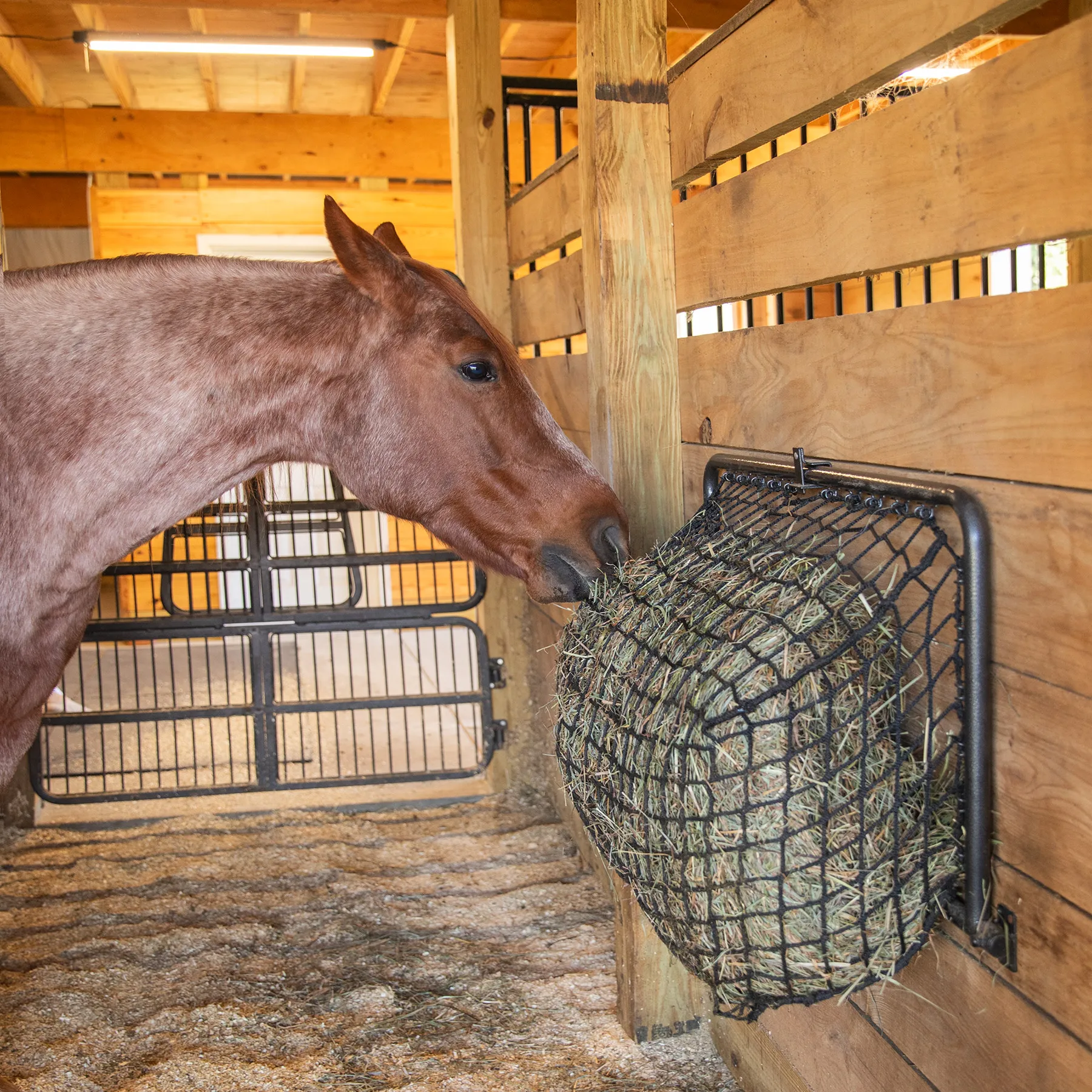1.5" knotless hay net promotes slow, healthy feeding