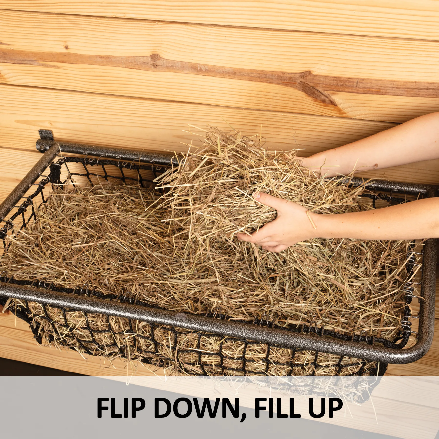 Tired of wrestling with awkward hay nets and daily refills? This fold-up hay feeder is your new barn best friend. Designed for convenience and built to last, the Easy-Up® Pro Fold-Up Hay Feeder Frame combines a durable, drop-down frame with a slow-feed, knotless hay net, perfect for simplifying chores while keeping your horse happily munching. With easy loading, a secure lock, and 4-flake capacity, it's feeding made efficient.