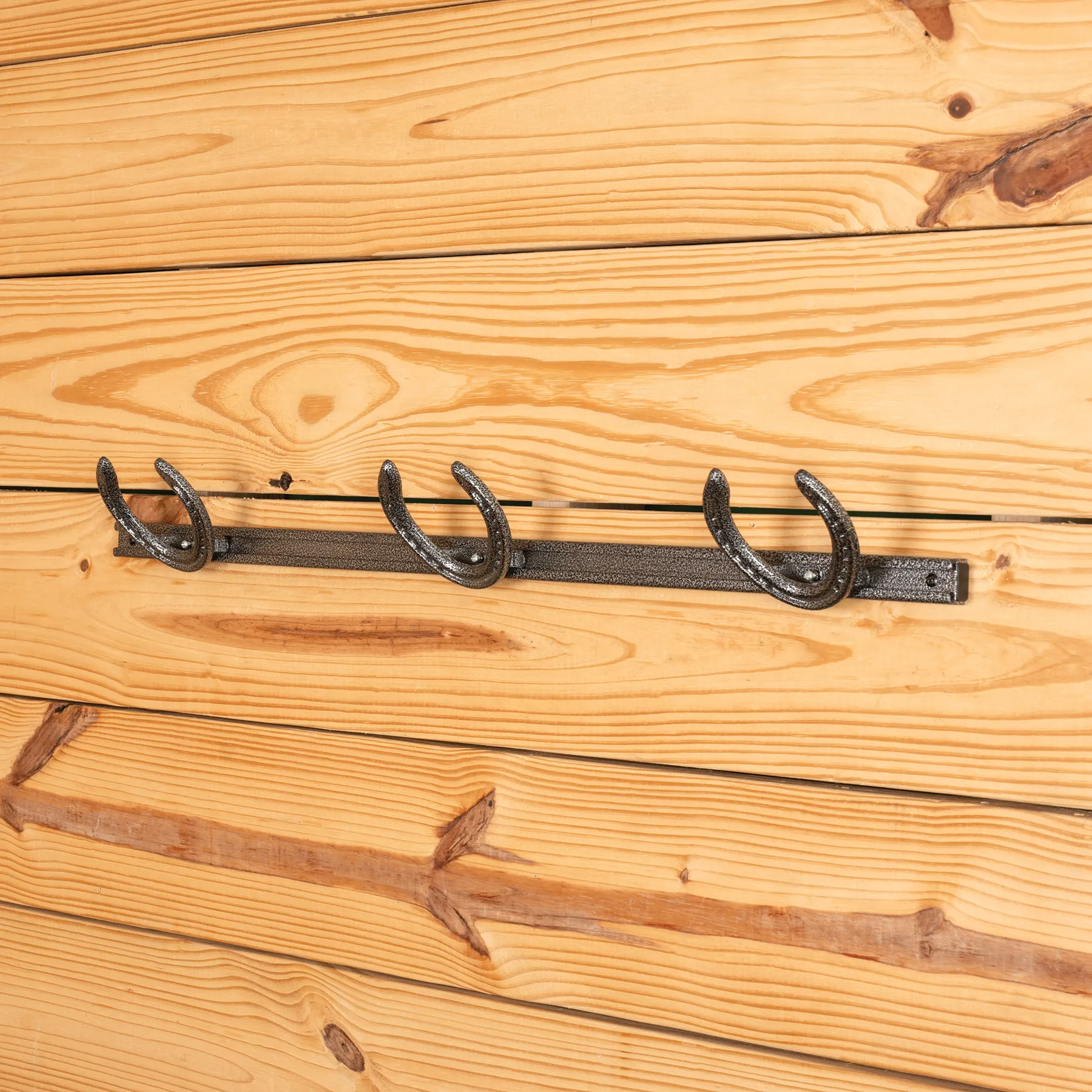 - (3) adjustable horseshoe holders that slide and lock to your preferred spacing