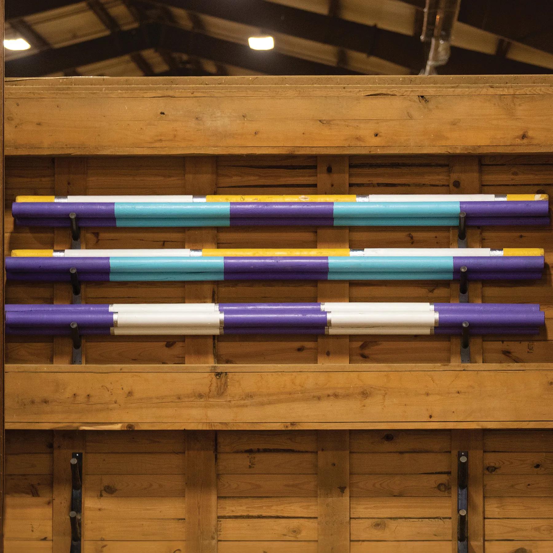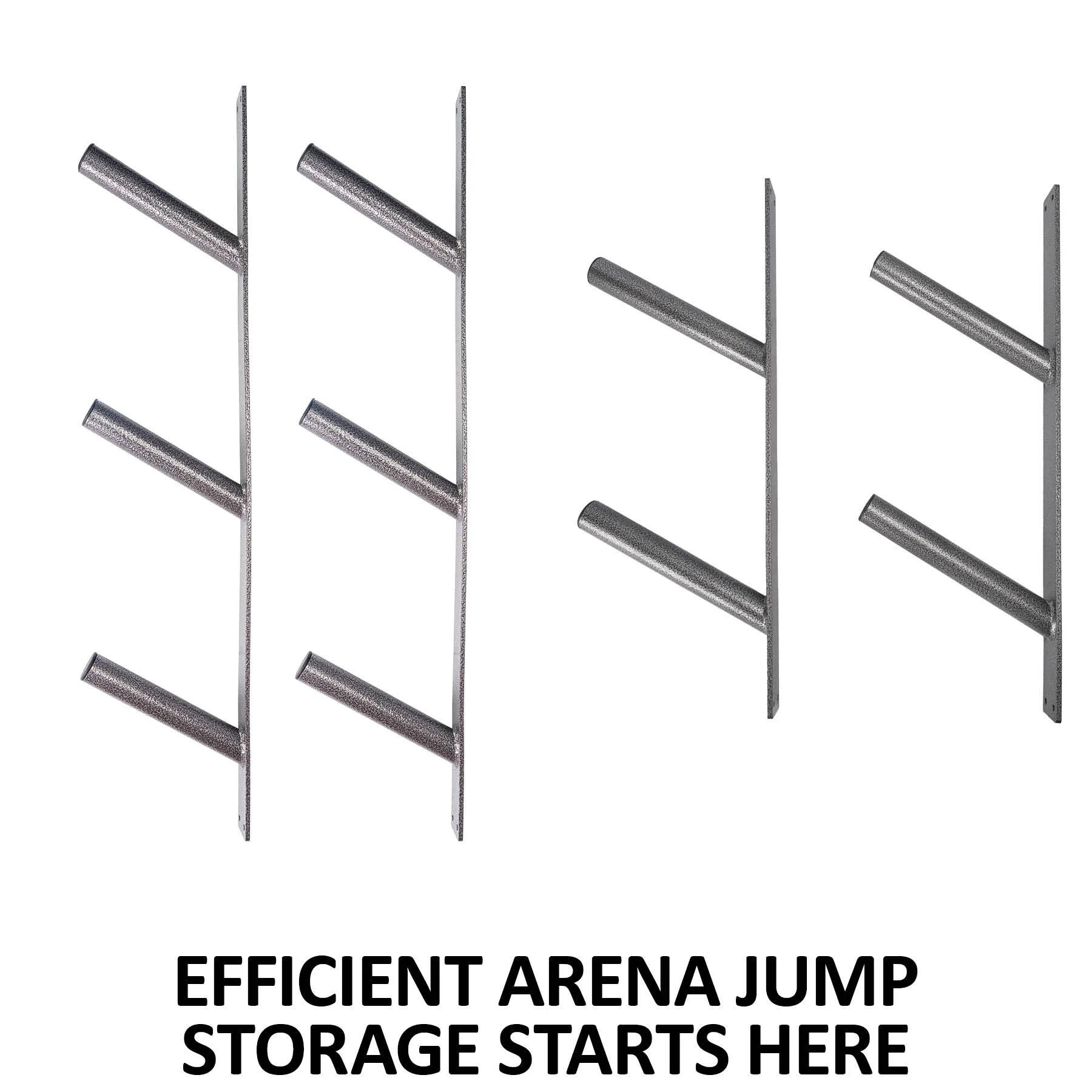Protect your jumping equipment with this jump pole storage, which neatly stacks poles and rails off the ground on any wall. Mount this easy-to-install jump pole storage system inside or outside your arena to save space. The larger, 3-arm rack holds up to 9 poles, the smaller, 2-arm rack holds 6 poles, or combine them to hold 15 poles total. The incredibly durable design features arms for storing jump rails up off the ground and at an easily reachable height.