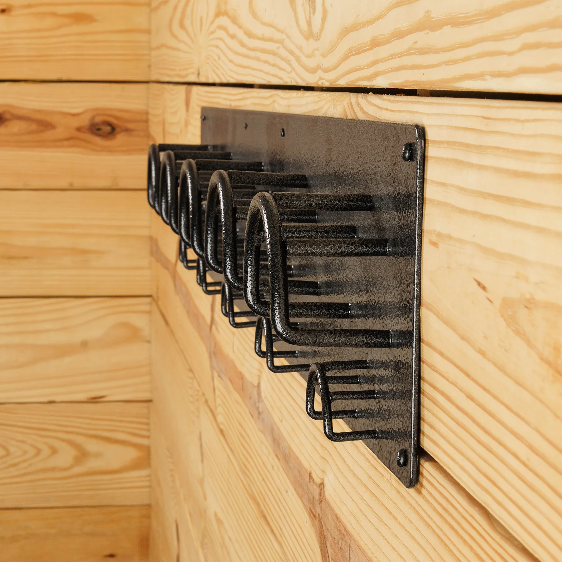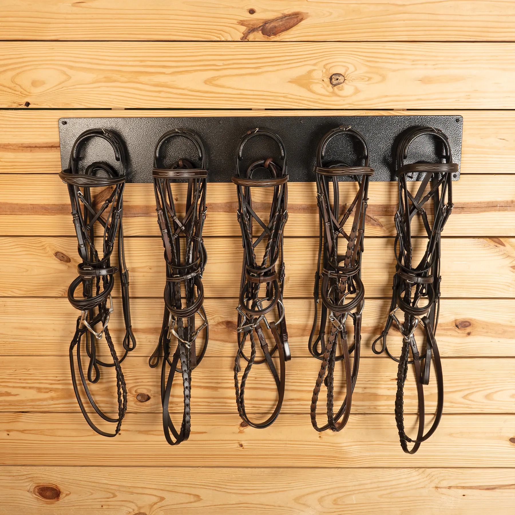Streamline your tack room setup with our bridle rack with 10 hooks and a crown saver. Built for busy barns and organized riders, this durable steel rack holds bridles, halters, and more - keeping your gear tidy, accessible, and in perfect shape. With ten total hooks and a rust-resistant finish, it's the heavy-duty solution your space deserves.