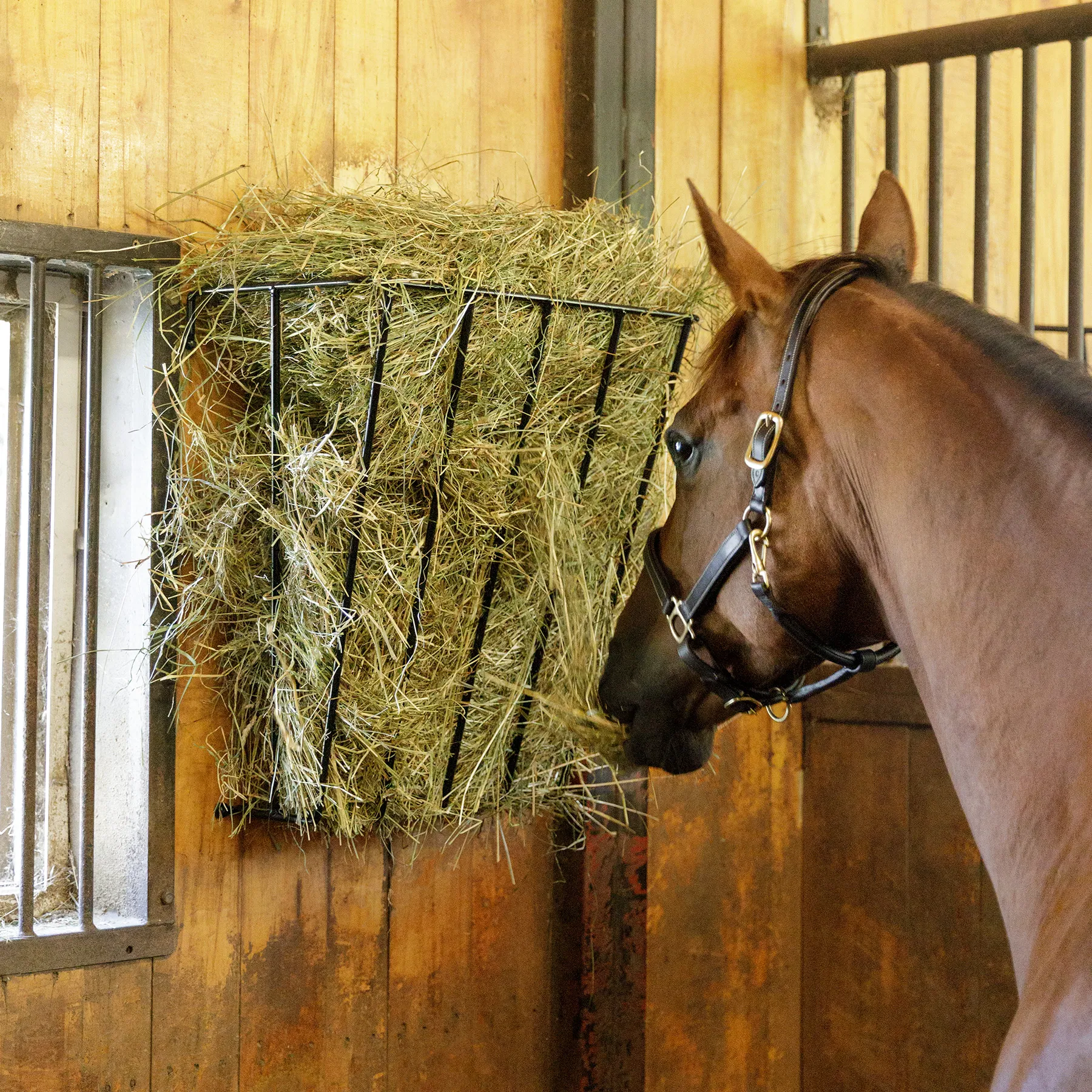 - Holds 2-3 flakes of hay, depending on thickness