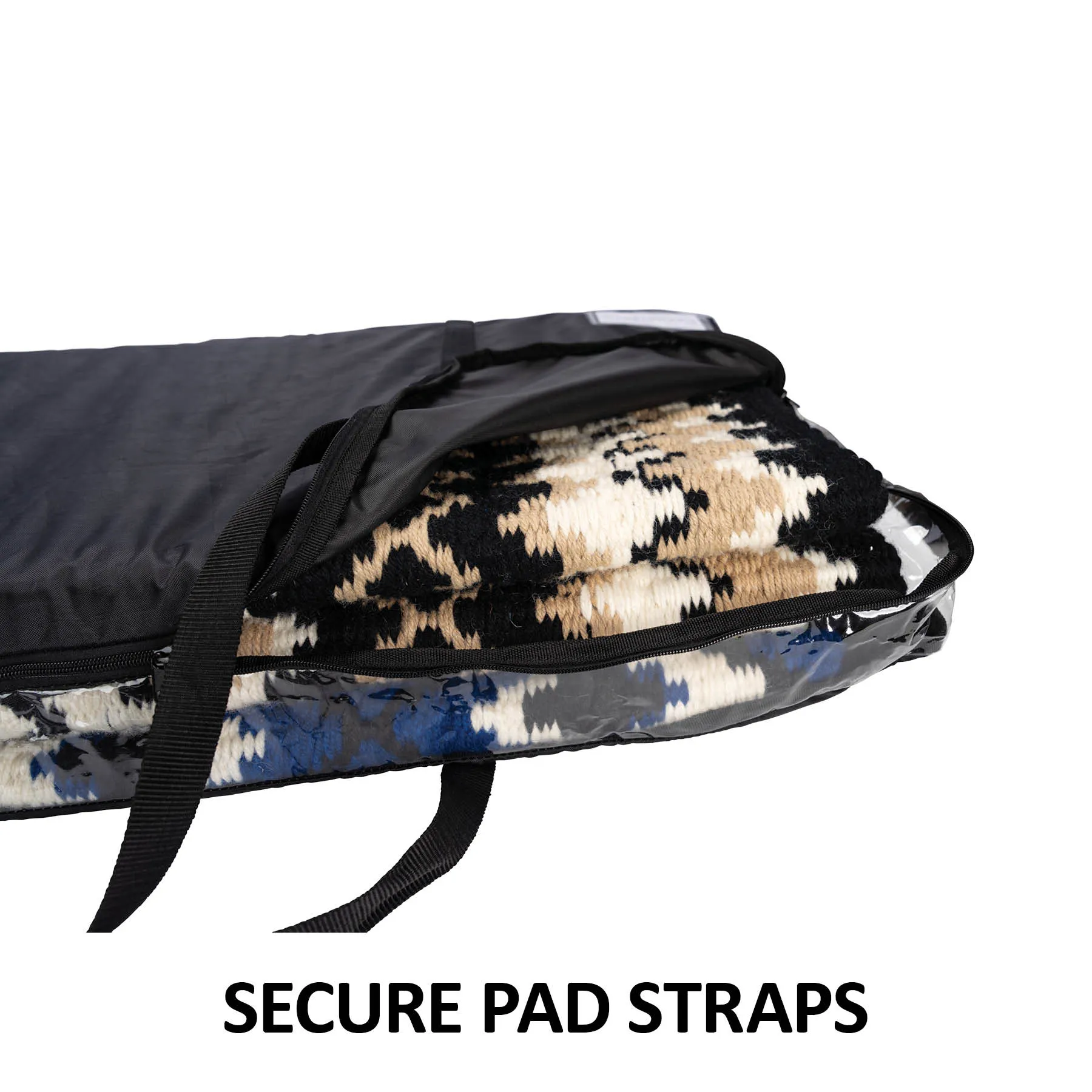 Store your Western Show Pads in a single or multi-saddle pad bag to keep your show pads organized and clean when not in use. These bags are equipped with a see-through panel, carrying straps, a full separating zipper for easy access, and venting holes at the bottom of the bag to improve airflow and odor control.