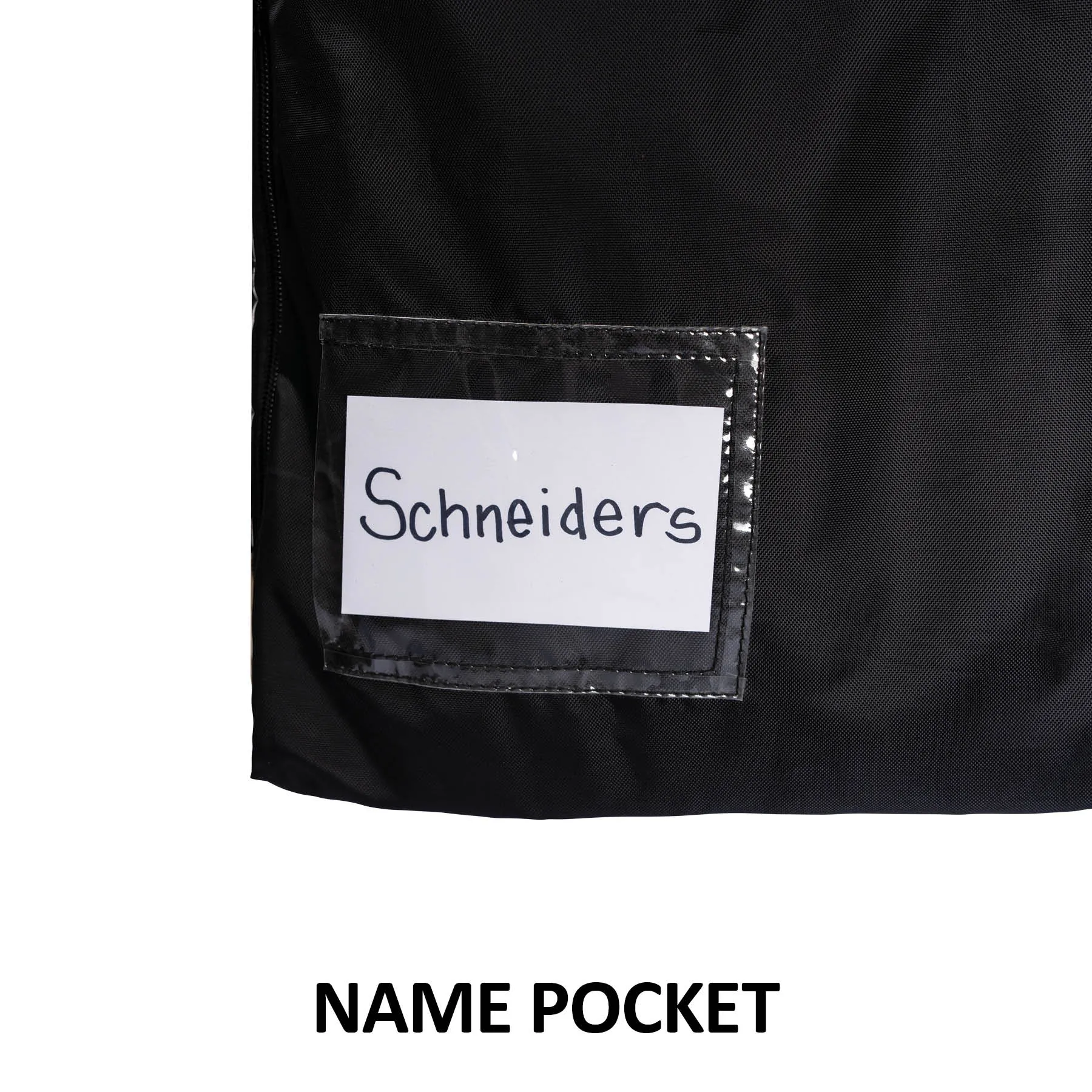 Clear vinyl name pocket on the outside