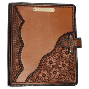 Schneiders® Floral Tooled Leather Three Ring Binder Padfolio