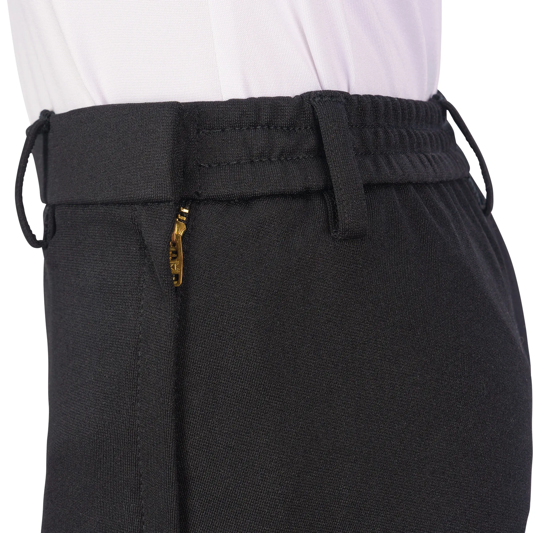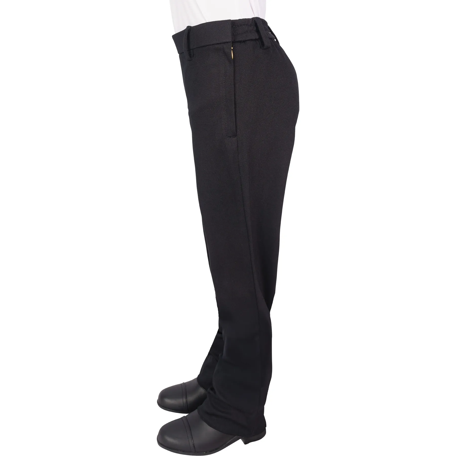 The Schneiders® Girls Western Stretch Show Pants are designed for young riders who need style, comfort, and performance in the ring. Crafted from a 300gsm blend of polyester and spandex, these pants offer structure, durability, and the perfect amount of stretch. The smooth, breathable fabric resists wrinkles and holds its shape, making it ideal for both showmanship and riding. A flat front with side zip and slide clasp provides a clean look under chaps, while an elastic waist insert ensures comfort for all body types.