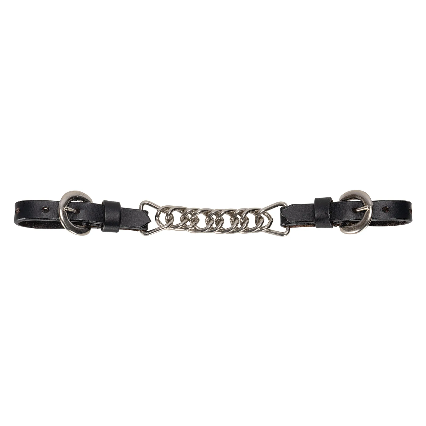 This curb chain is perfect for use with training, show, or trail headstalls. It's made from a supple 1/2" wide harness leather with a stainless steel buckle and double link chain for a touch of more leverage.