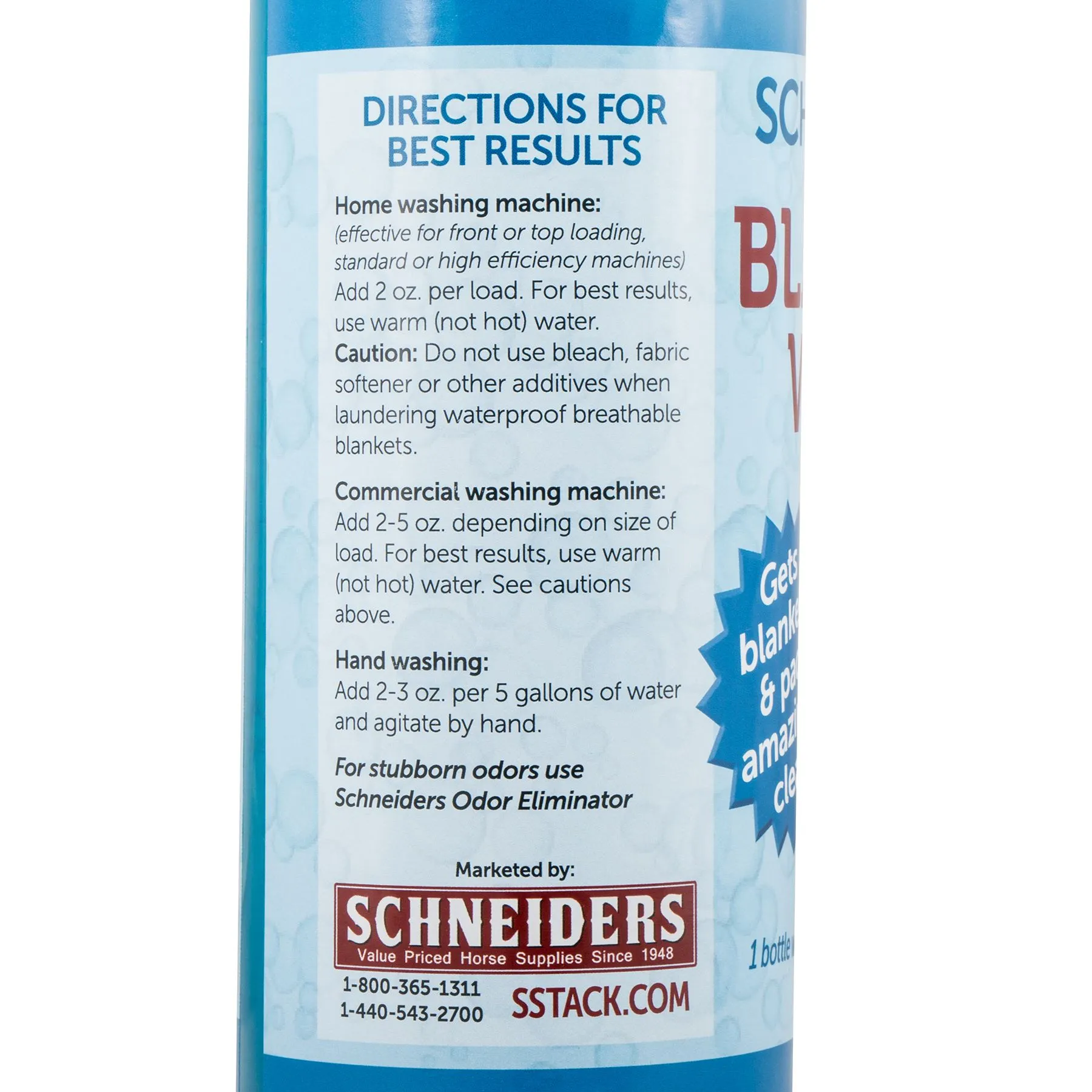 The Schneiders® Horse Blanket Wash is the ultimate solution for cleaning your horse's blankets, sheets, saddle pads, and more - without compromising waterproofing. This phosphate-free, biodegradable formula lifts even the heaviest dirt while gentle on fabrics and skin. With minimal sudsing, it rinses out easily, leaving no residue behind. Safe for HE washers and effective in all water temperatures, this detergent brightens colors and restores freshness to your horse's gear.