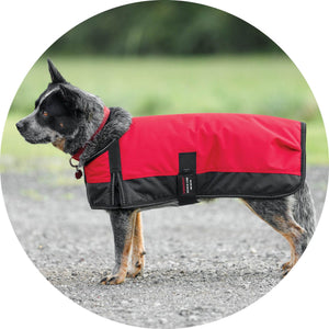 Like our horses, we want our dogs comfortable for a day at the stables. This insulated, waterproof, reflective dog coat is perfect for your pup! This dog coat is made with a 600 denier waterproof and breathable polyester outer, 200 grams of insulation for a midweight level of warmth, and a soft nylon lining for ultimate comfort. As an additional benefit, this dog coat has a reflective thread around the entire binding, so you can find your dog in the dark before going home for the day. The perfect accessory for your canine companion!