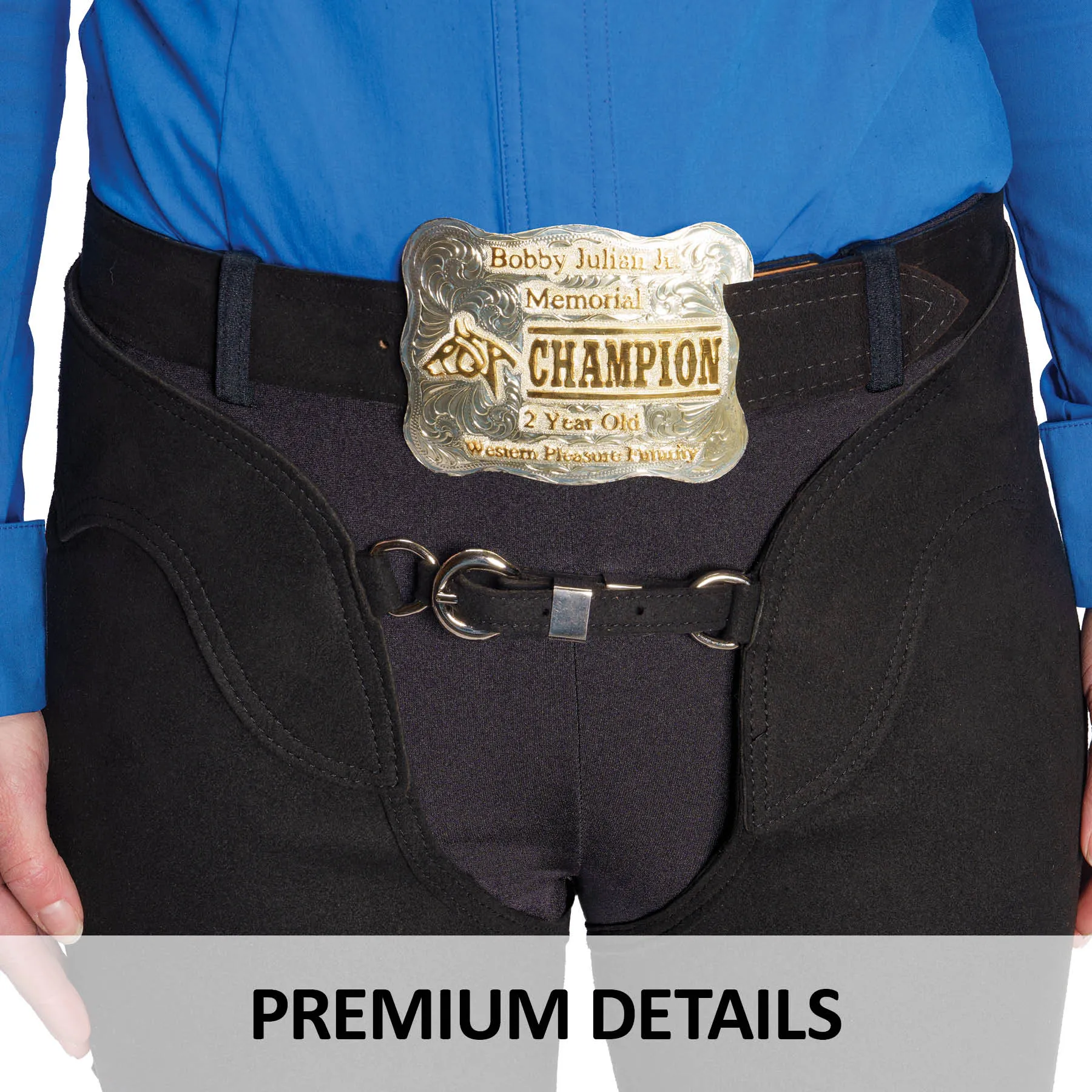 Step into the show ring confidently in the Schneiders® Ladies Washable Show Chaps. Designed for a flawless, figure-flattering fit, these chaps exude classic Western style, making them perfect for Western Pleasure and Horsemanship classes. With a clean front rise and elegant hind styling, they offer a polished, professional look that enhances your performance.