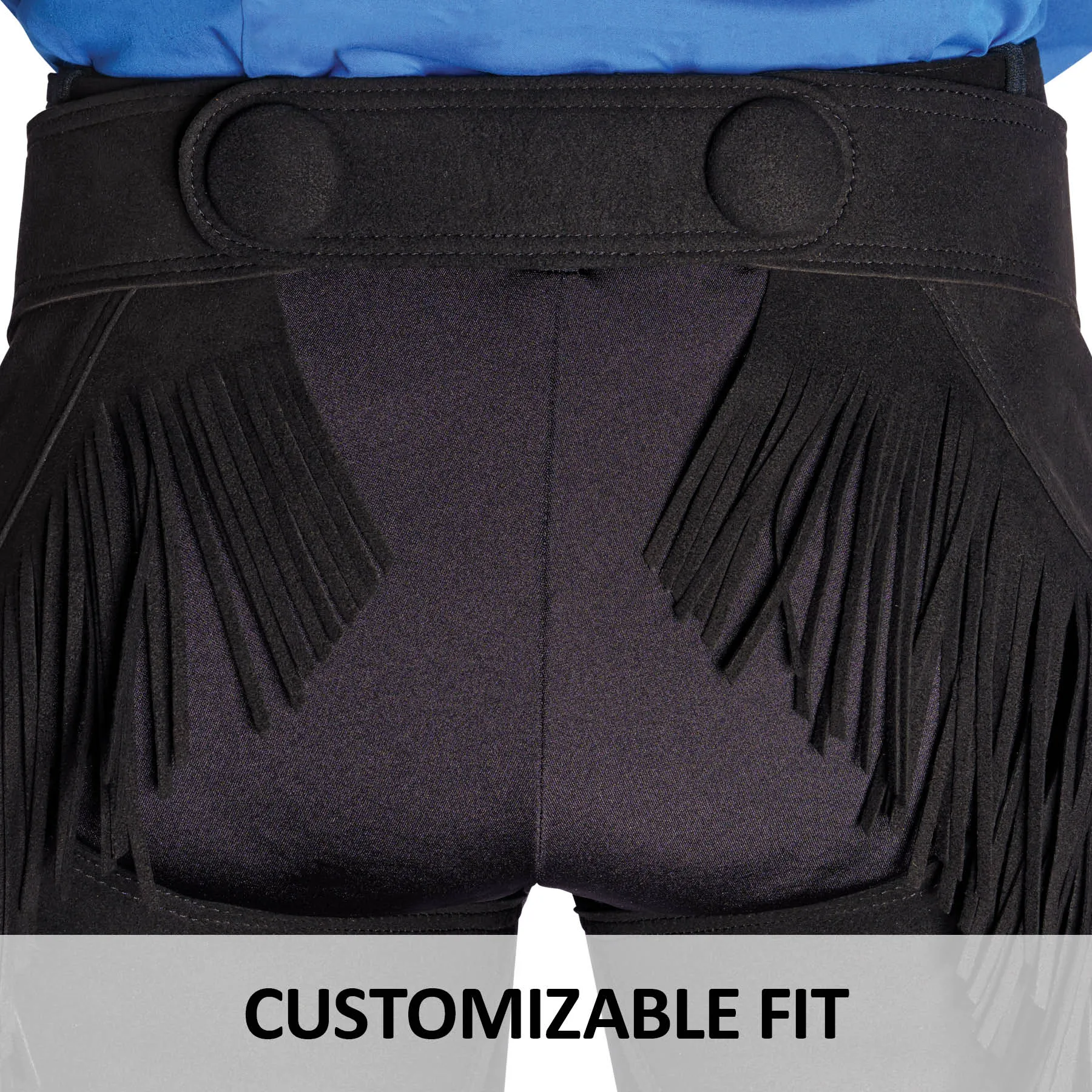 • Adjustable waist with front buckle and removable back extension belt