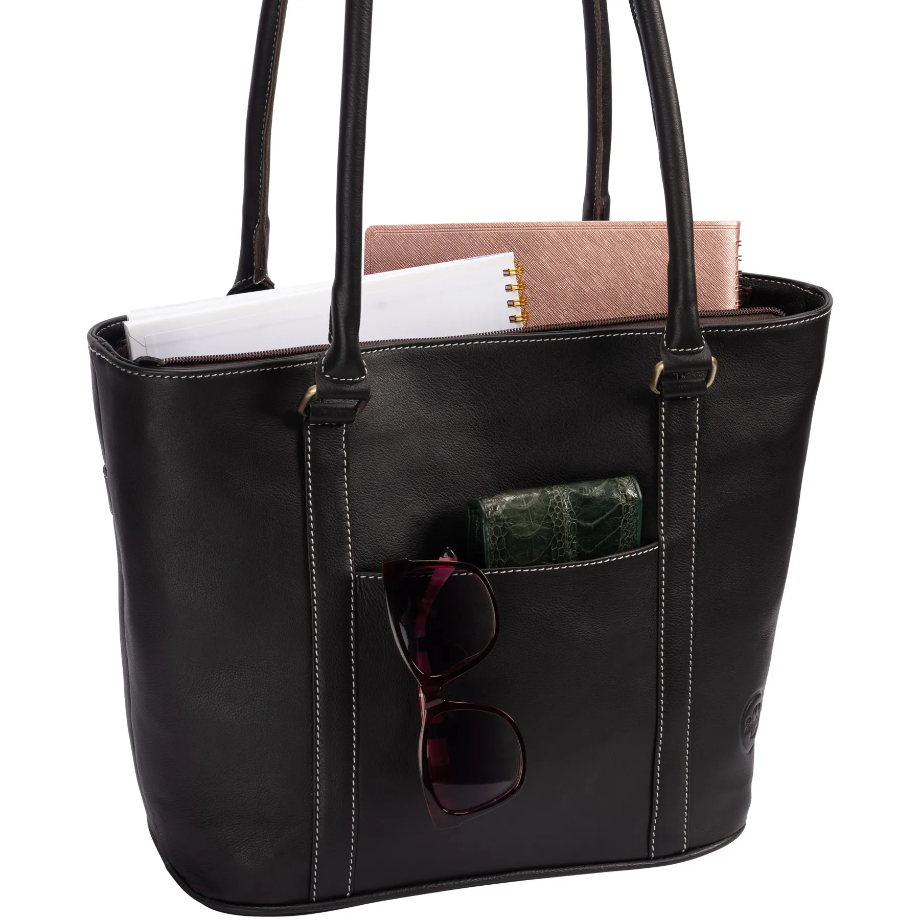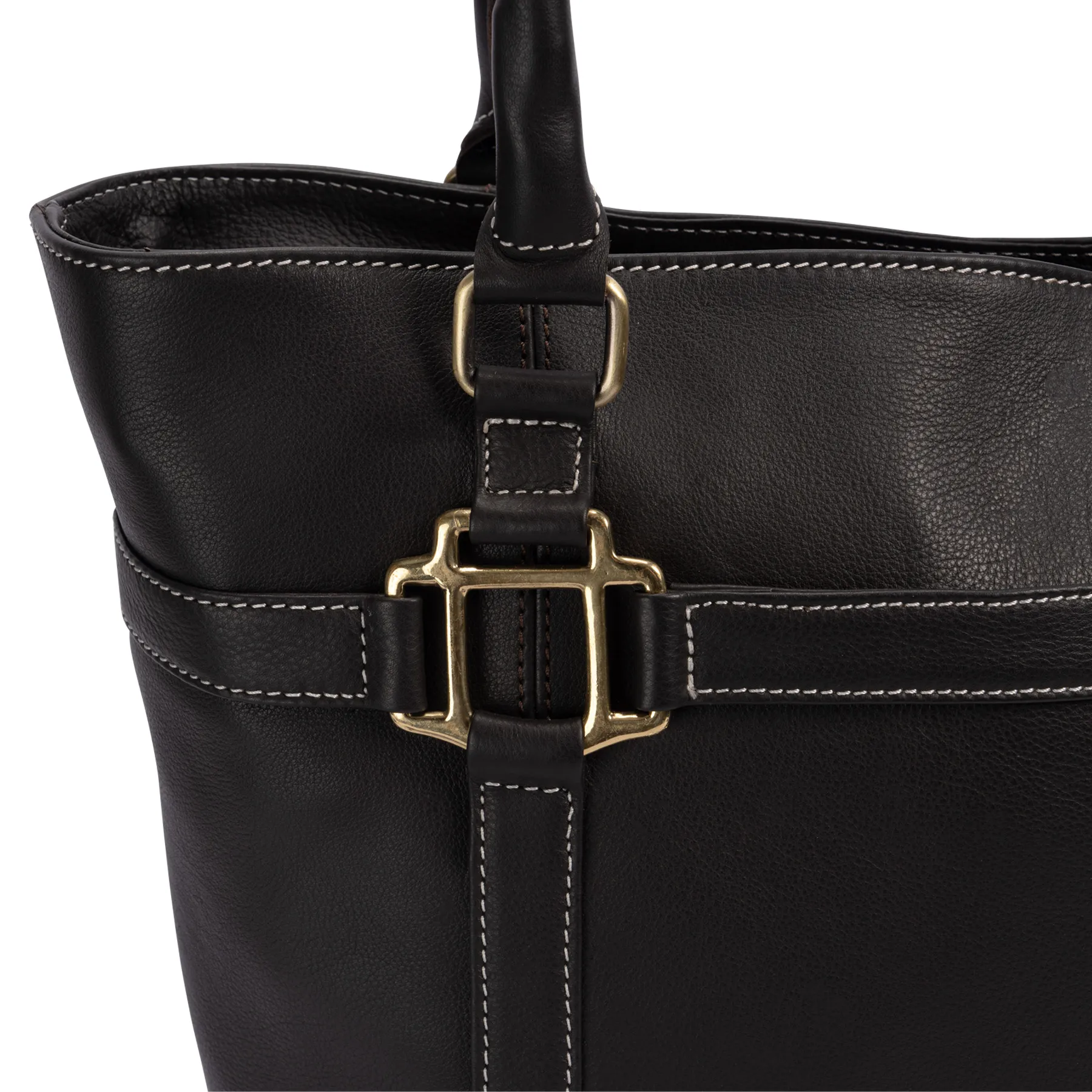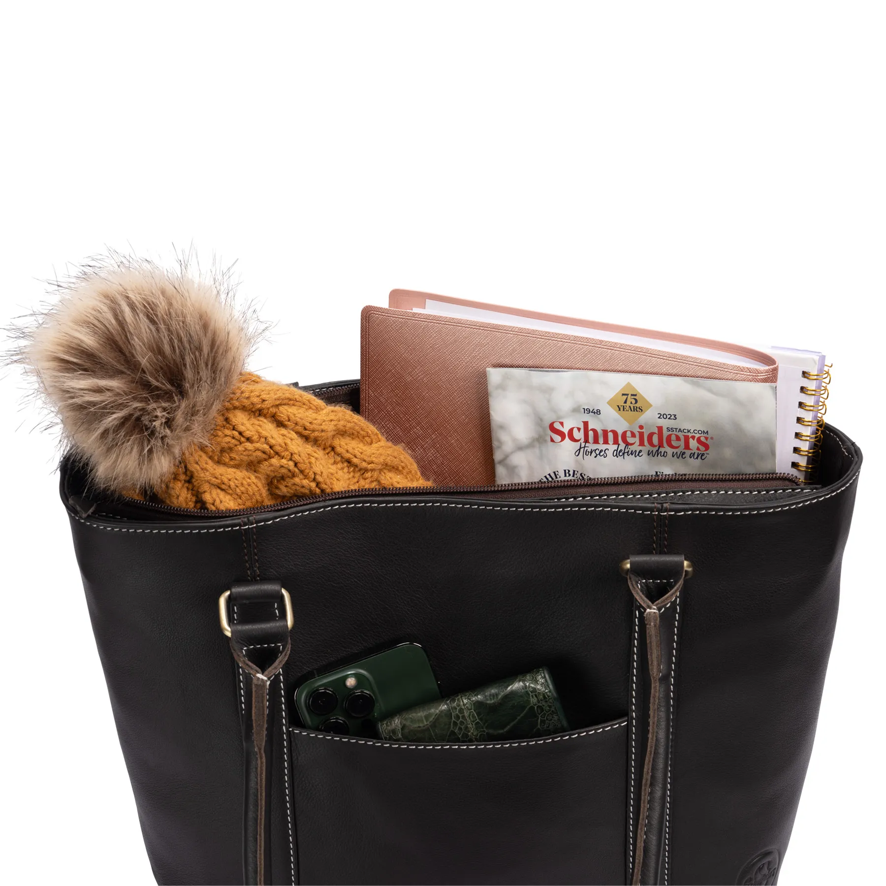 Carry your essentials with classic equestrian style using this beautifully crafted leather tote. Designed with an elegant English flair, this spacious bag is perfect for organizing show paperwork, carrying your laptop, or serving as your everyday barn-to-town companion. Durable leather construction and refined brass accents create a timeless look, while multiple pockets keep everything neatly in place.